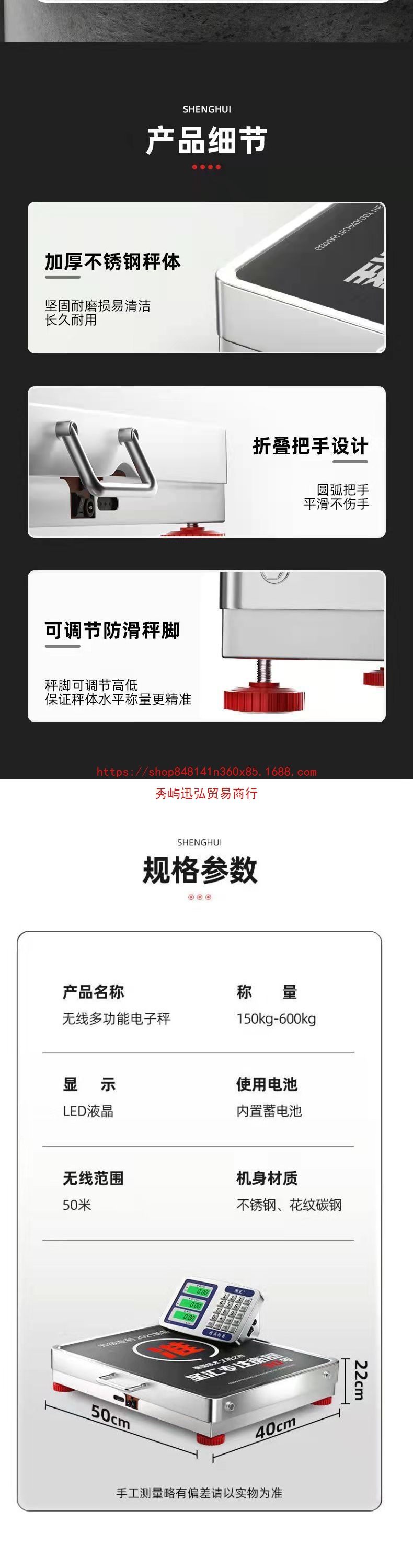 무선 분리형 전자 저울 휴대용 상업용 저울 흔들림 방지 300kg 600kg 휴대용 저울스토어 가기