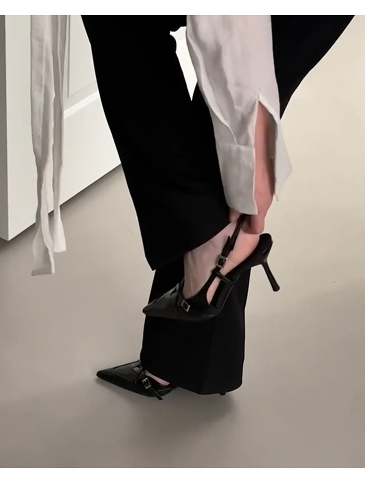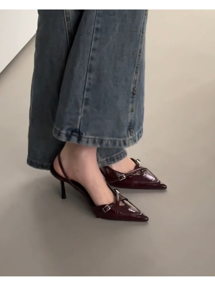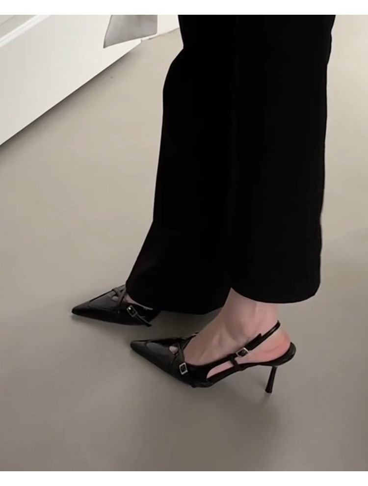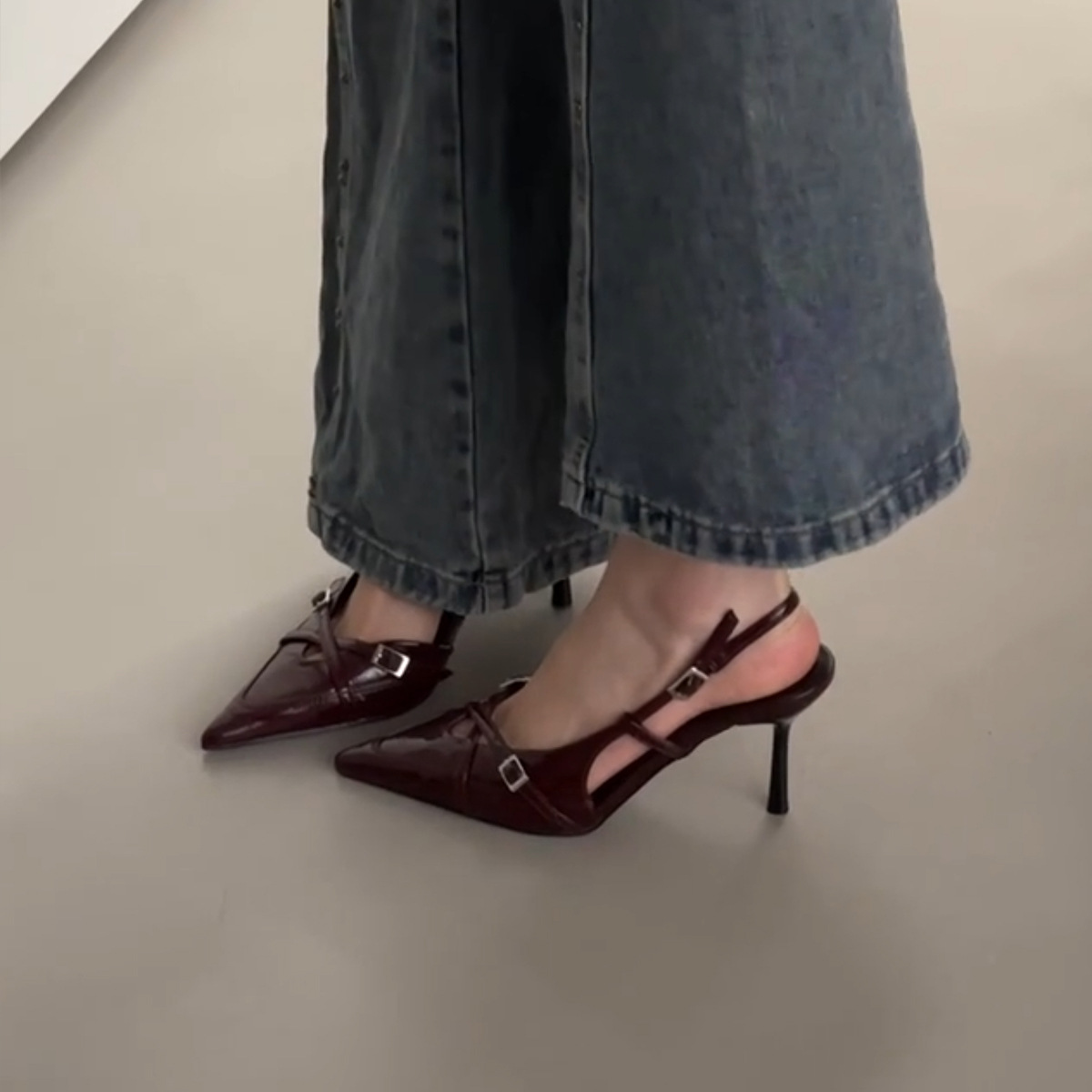 여성을위한 프랑스 스타일 뾰족한 발가락 스틸레토 하이힐 샌들 2025 여름 새로운 섹시한 연예인 스타일 뒷굽 신발스토어 가기