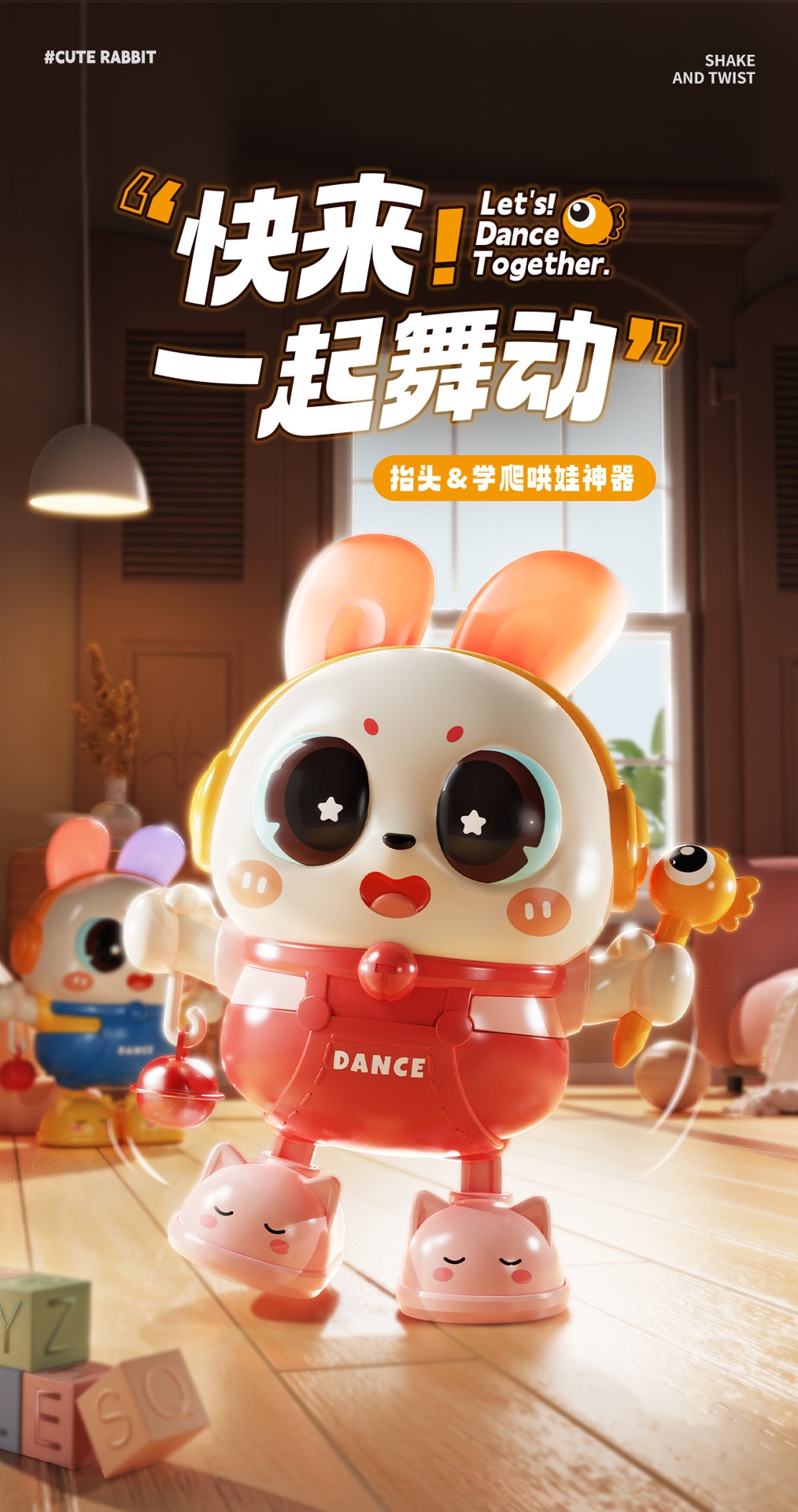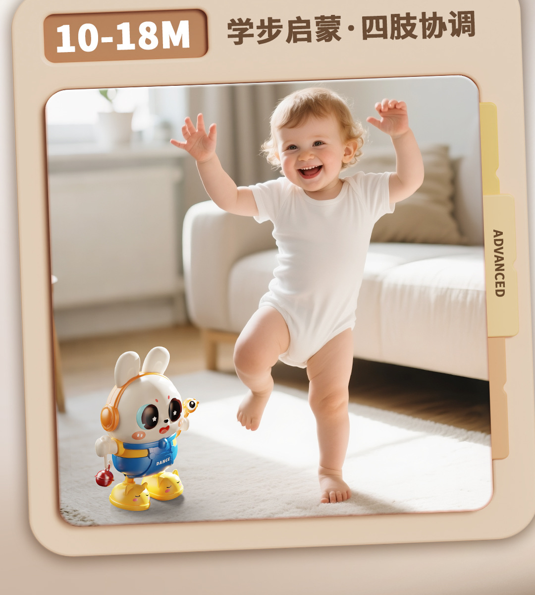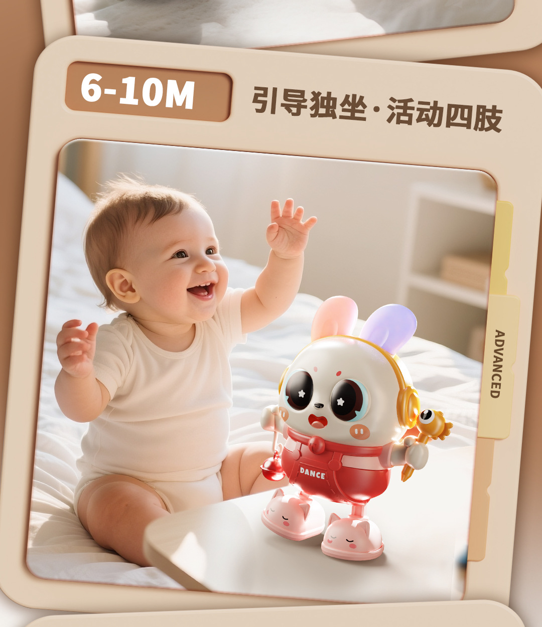새로운 아기 헤드업 장난감, 춤추는 귀여운 토끼, 연습 및 훈련 유물, 노래하고 춤추는 전기 작은 행운의 토끼 아기스토어 가기