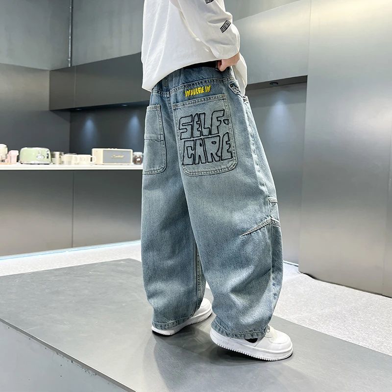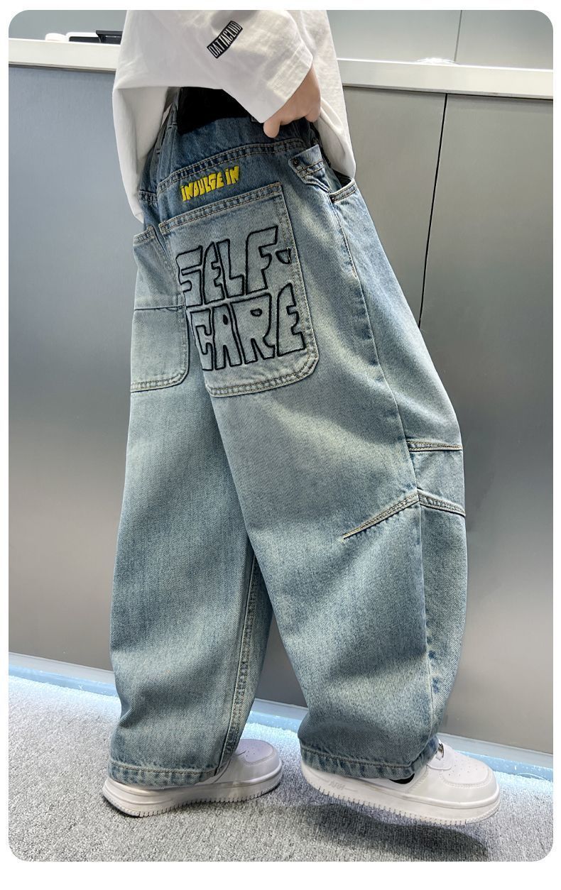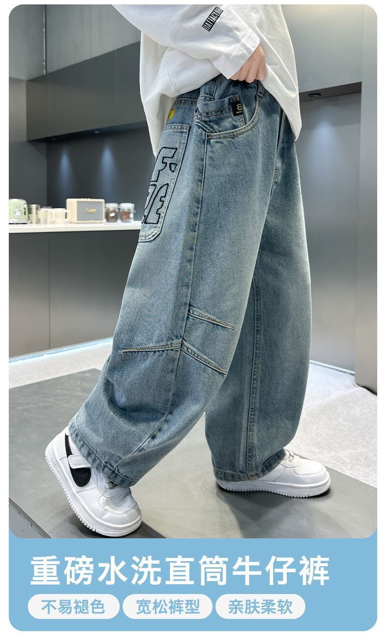 소년 바지 새로운 가을 청바지 2025 봄, 가을 어린이 바지 중대형 어린이 느슨하고 잘 생긴 소년 바지스토어 가기