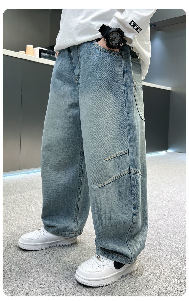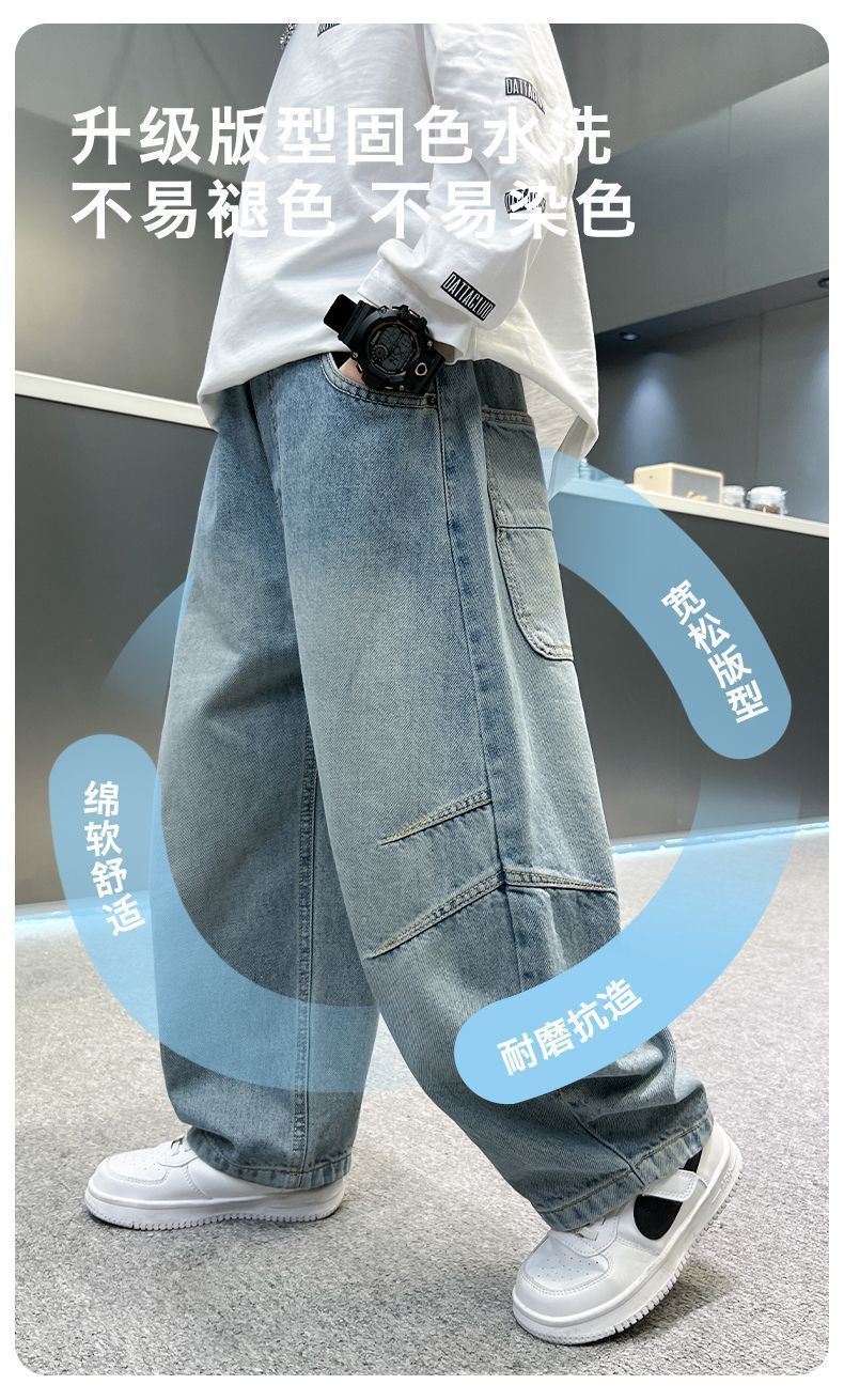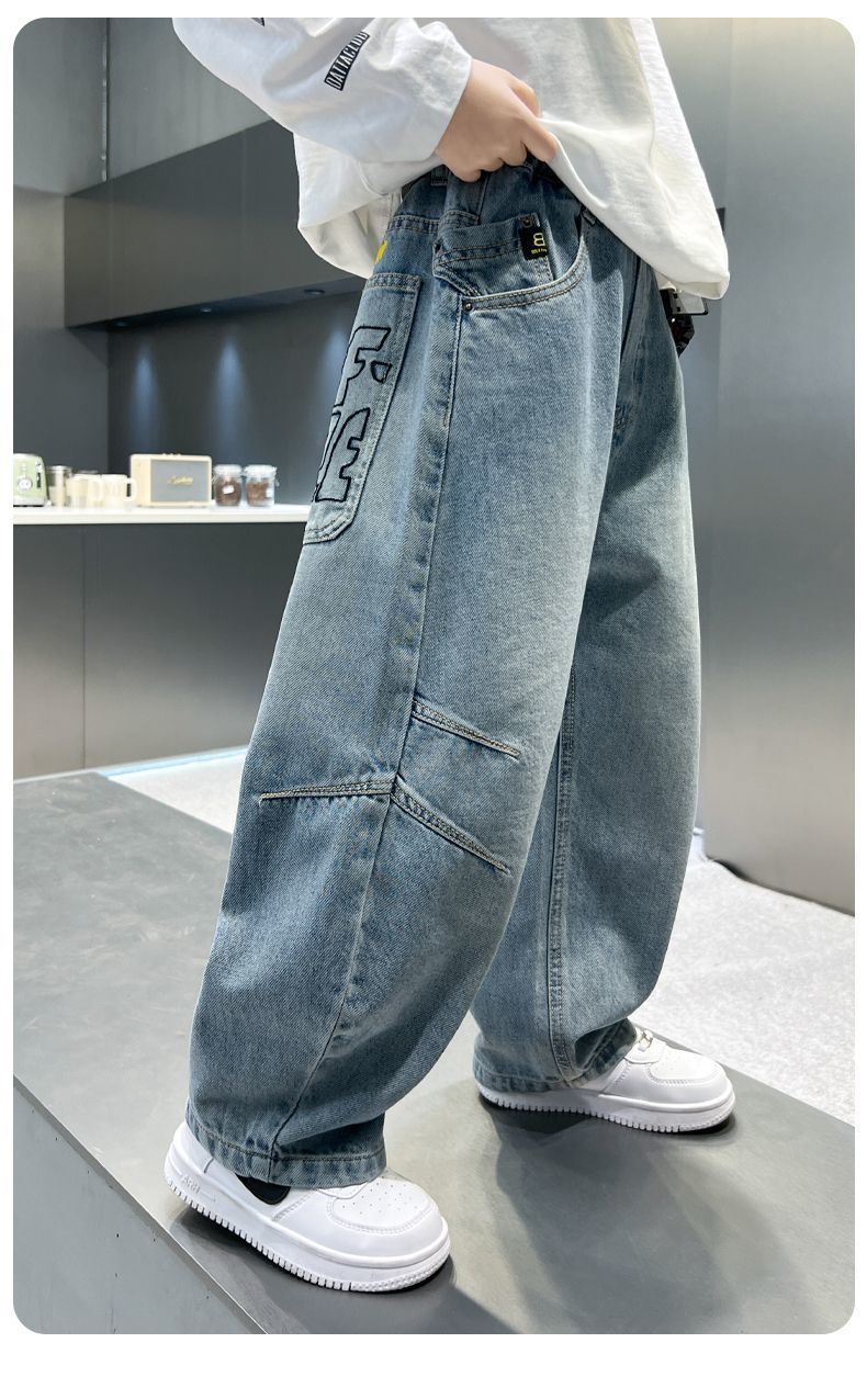 소년 바지 새로운 가을 청바지 2025 봄, 가을 어린이 바지 중대형 어린이 느슨하고 잘 생긴 소년 바지