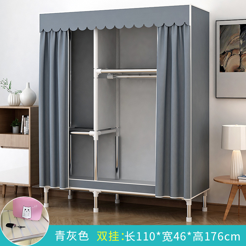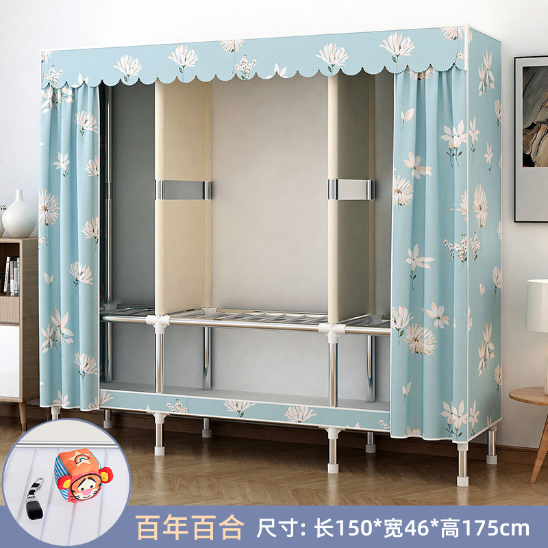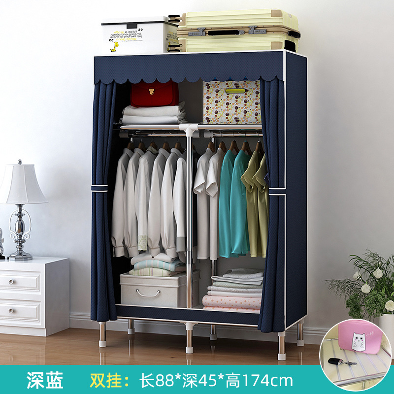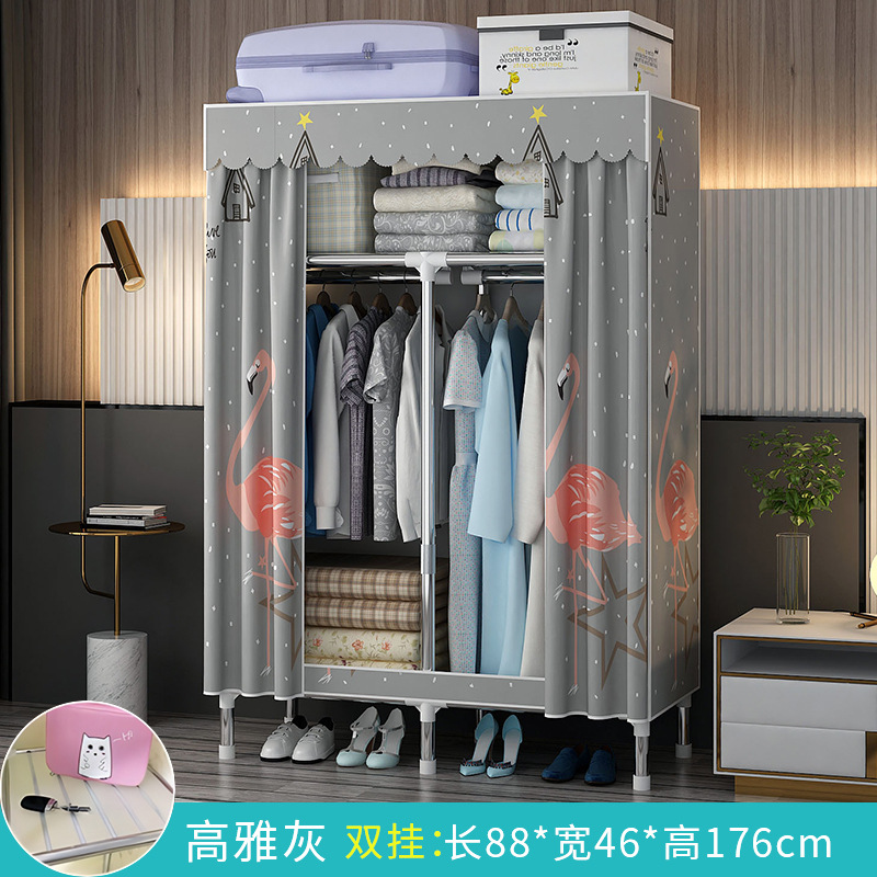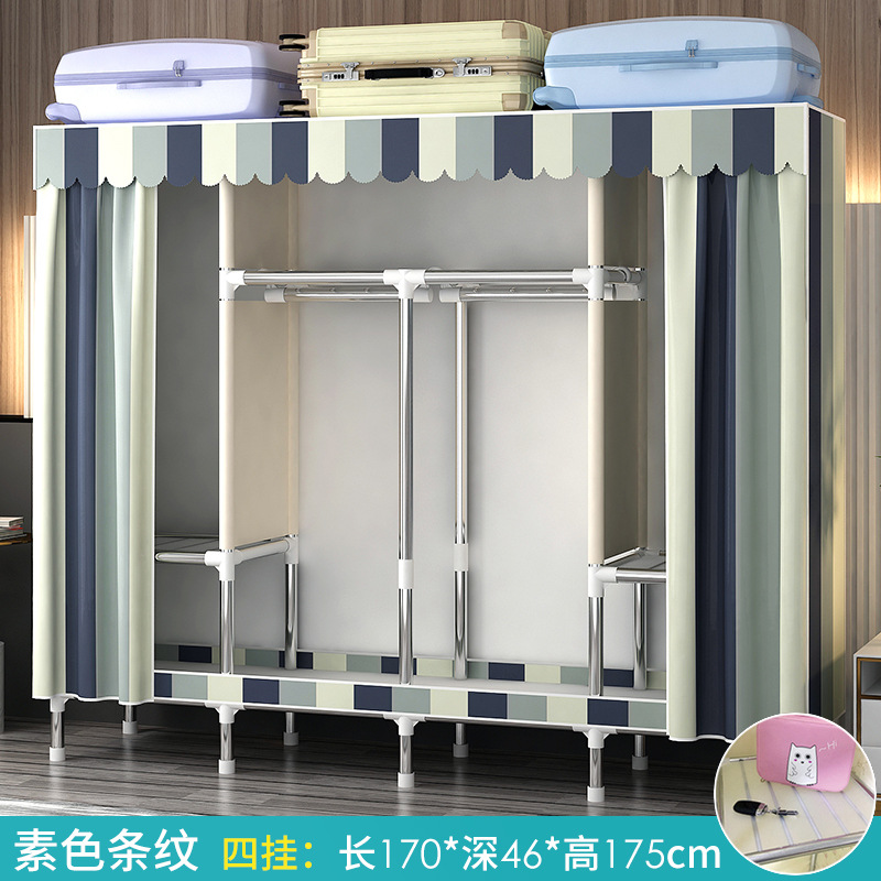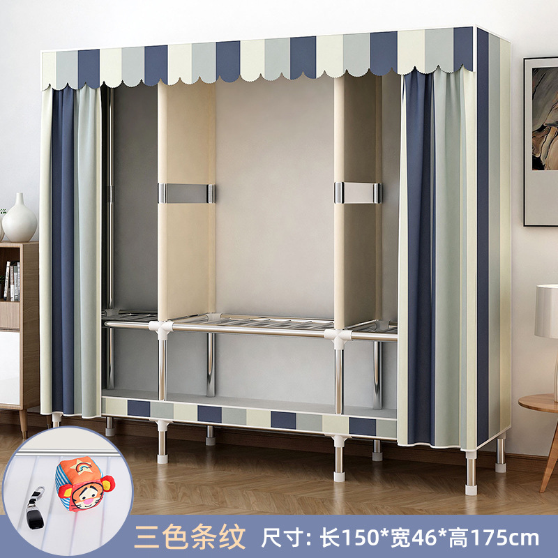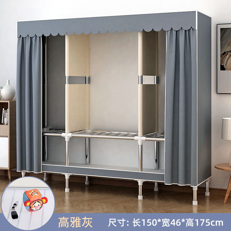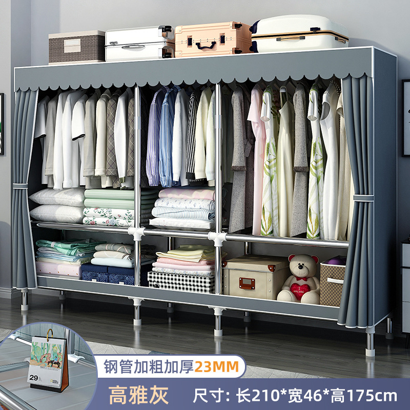 가정용 침실용 간이 옷장 강철 프레임 두꺼운 수납 천 옷장 임대 주택 조립 천 걸이 옷장