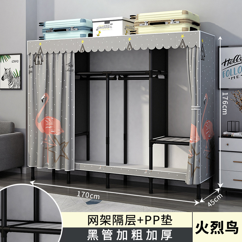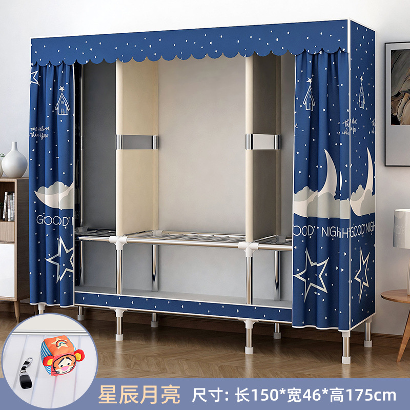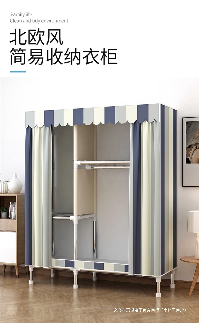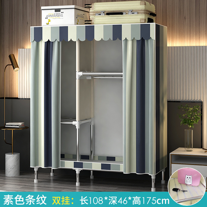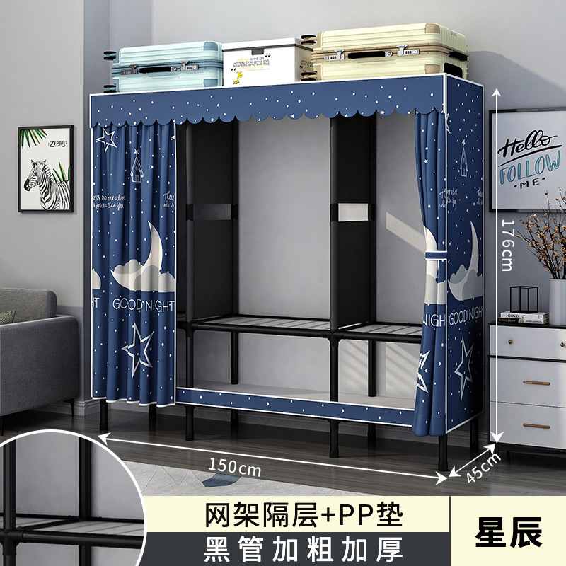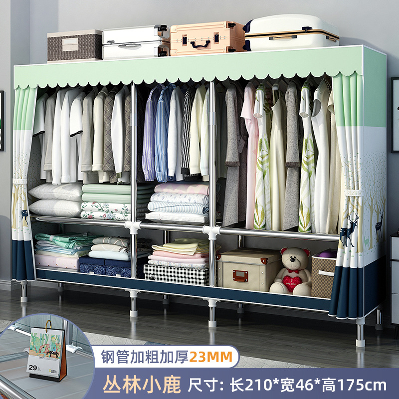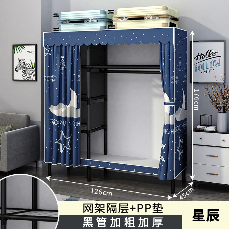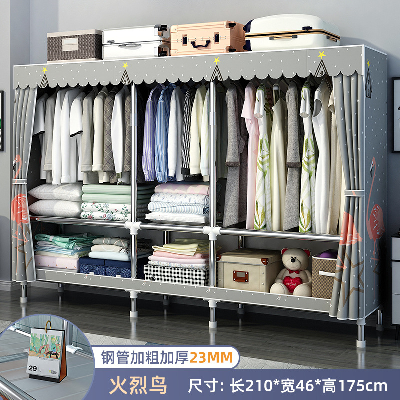 가정용 침실용 간이 옷장 강철 프레임 두꺼운 수납 천 옷장 임대 주택 조립 천 걸이 옷장