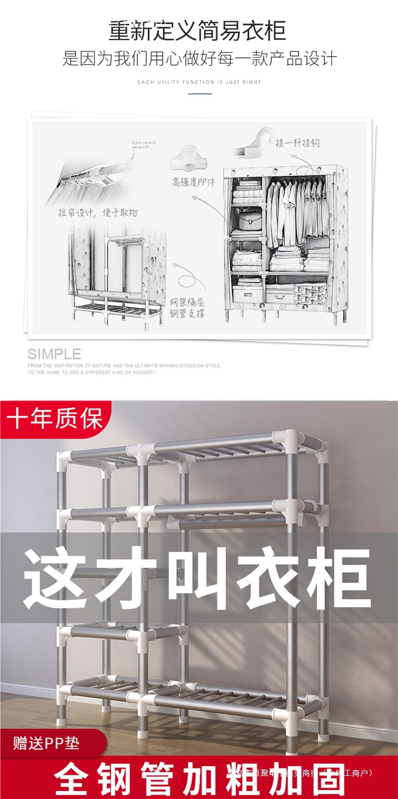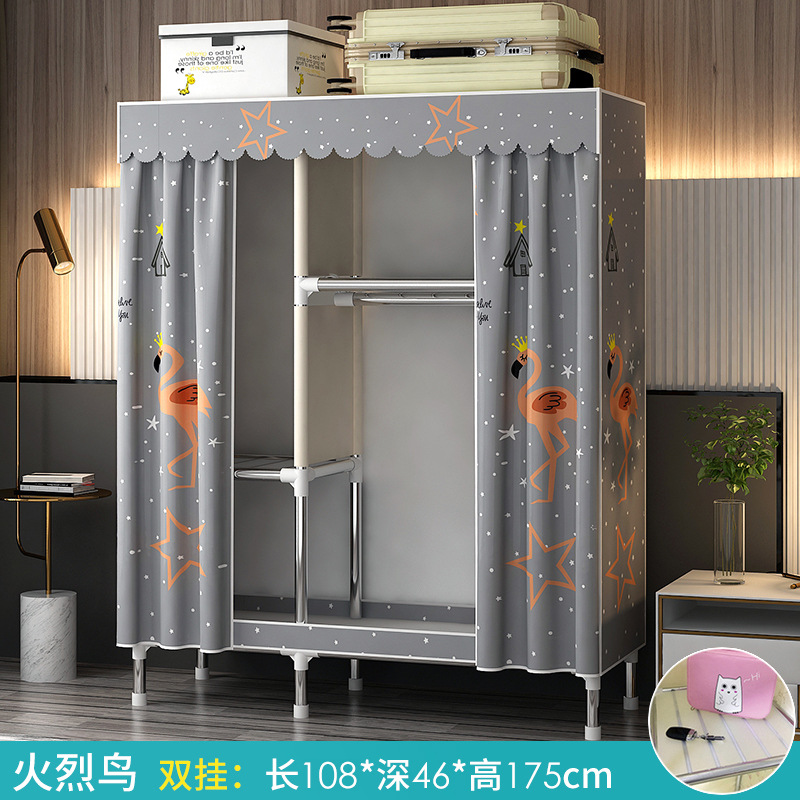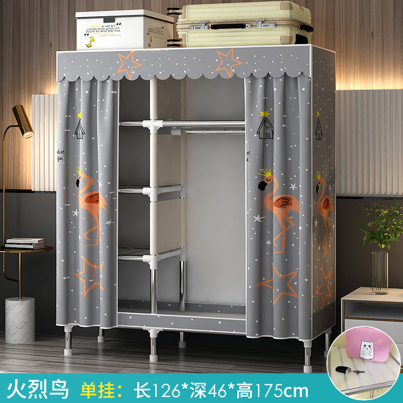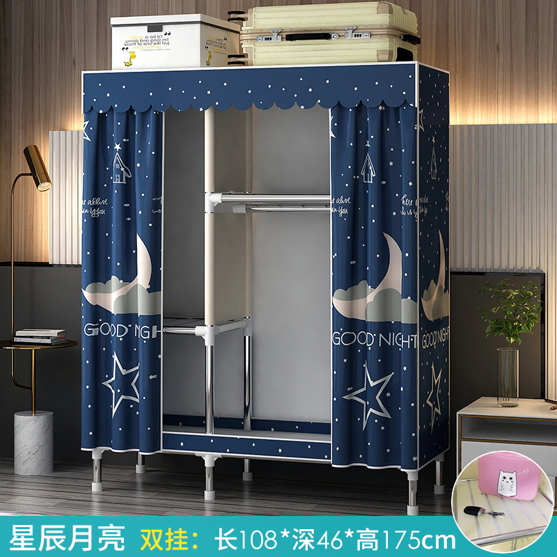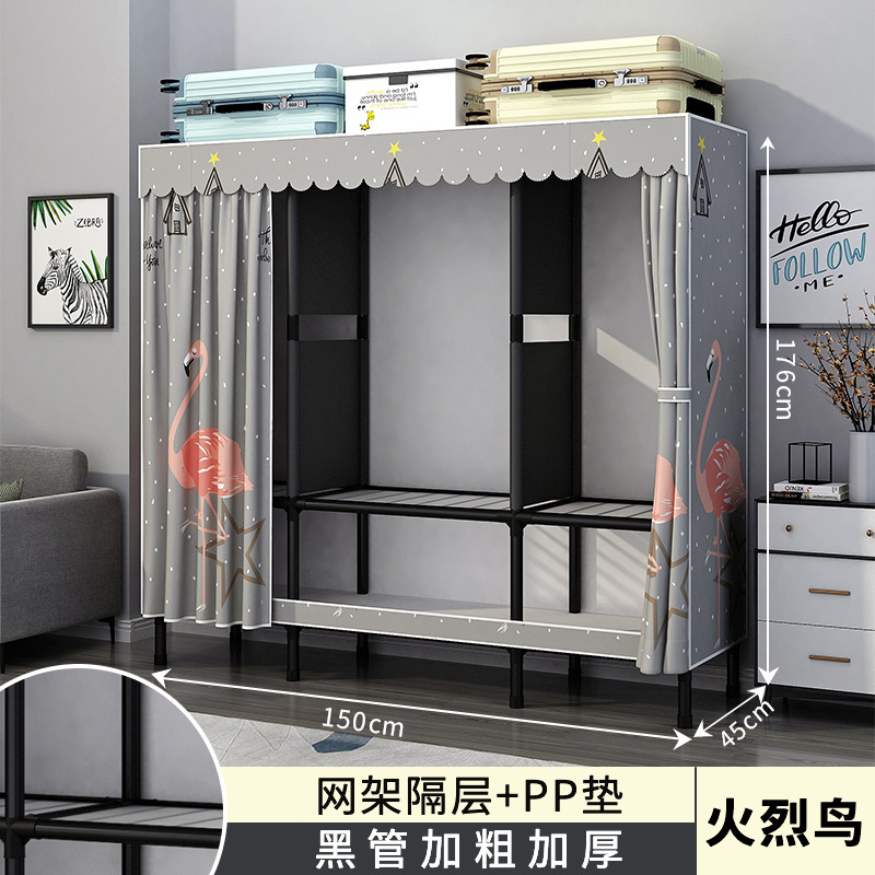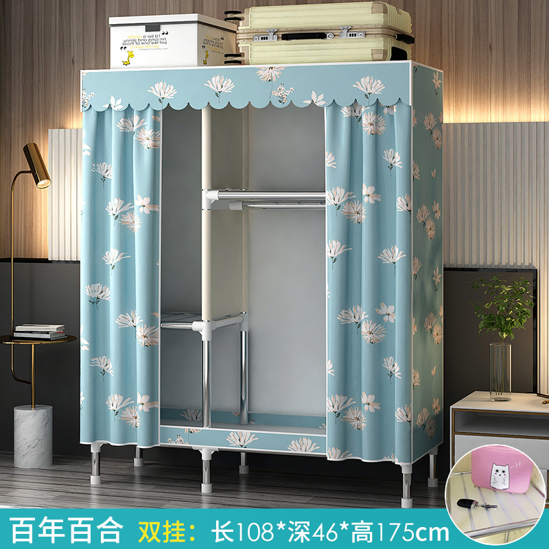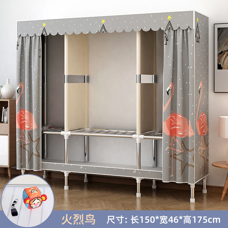 가정용 침실용 간이 옷장 강철 프레임 두꺼운 수납 천 옷장 임대 주택 조립 천 걸이 옷장