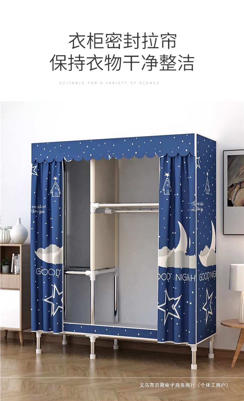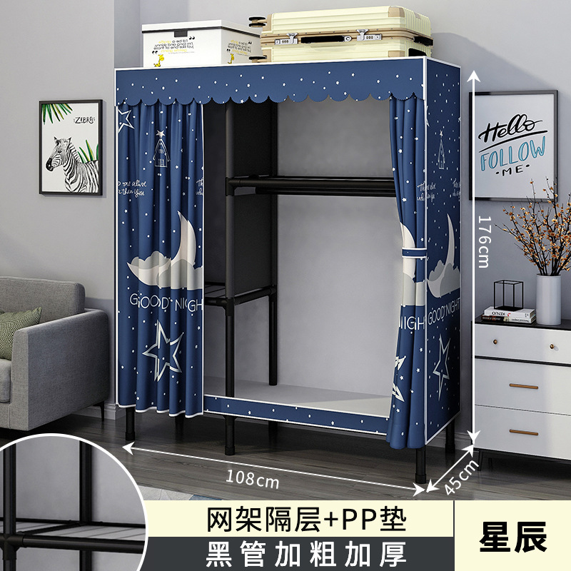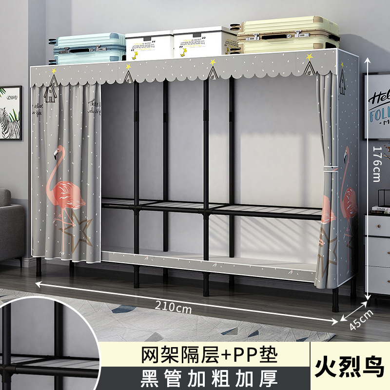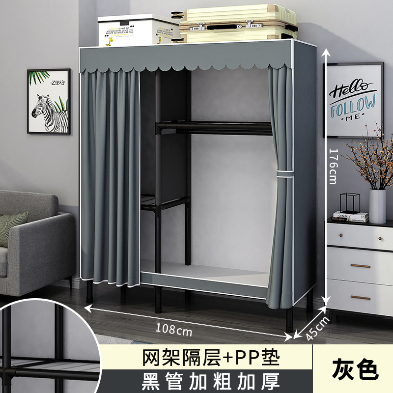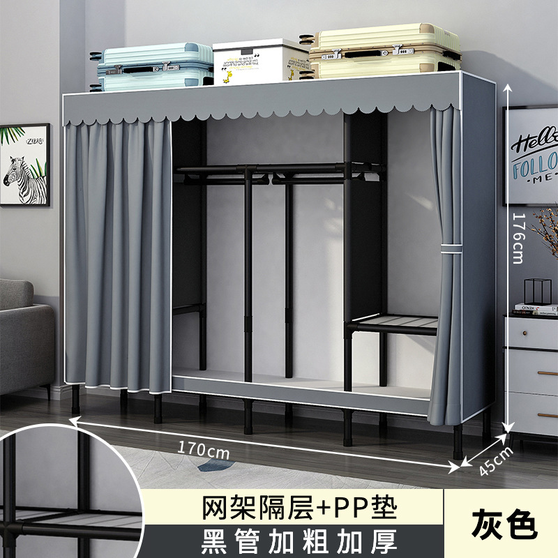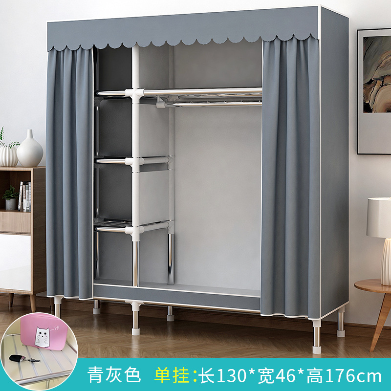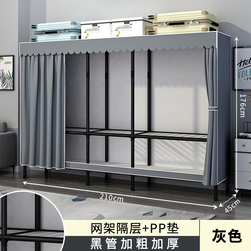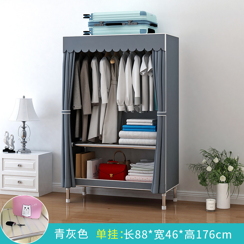 가정용 침실용 간이 옷장 강철 프레임 두꺼운 수납 천 옷장 임대 주택 조립 천 걸이 옷장스토어 가기