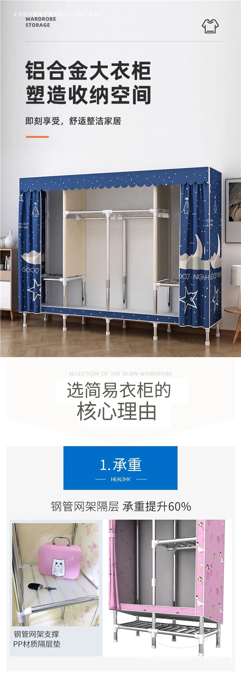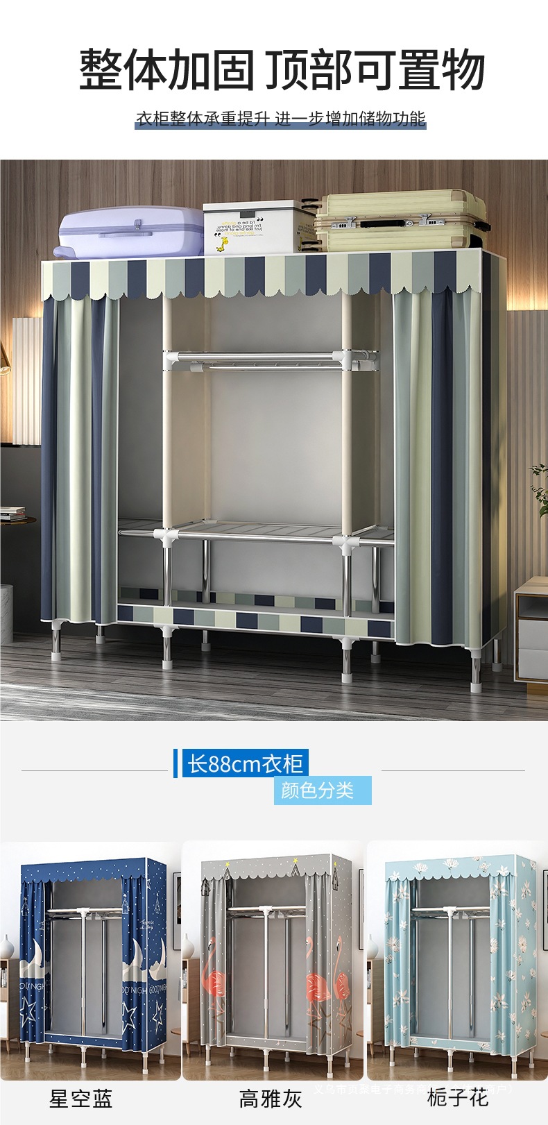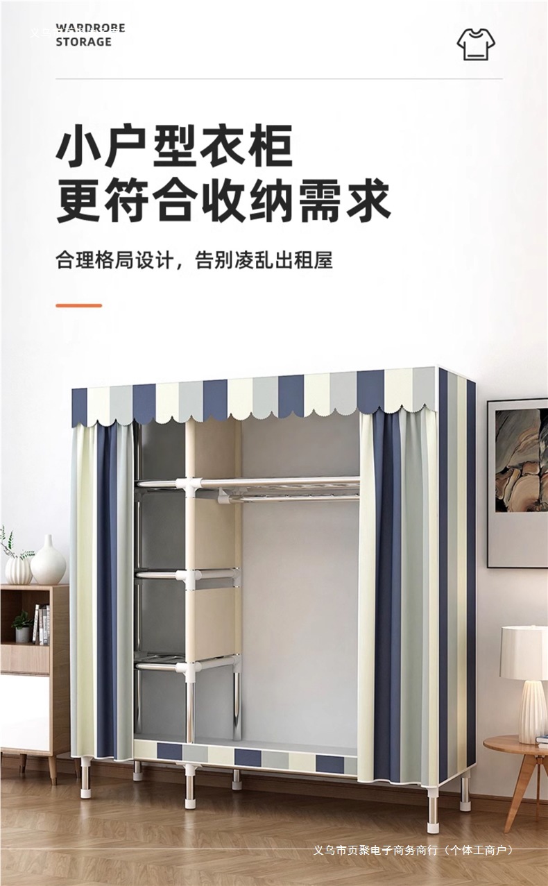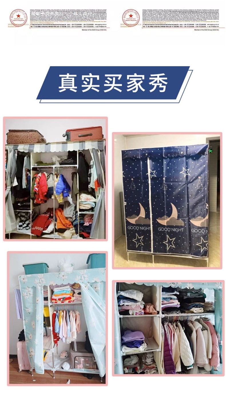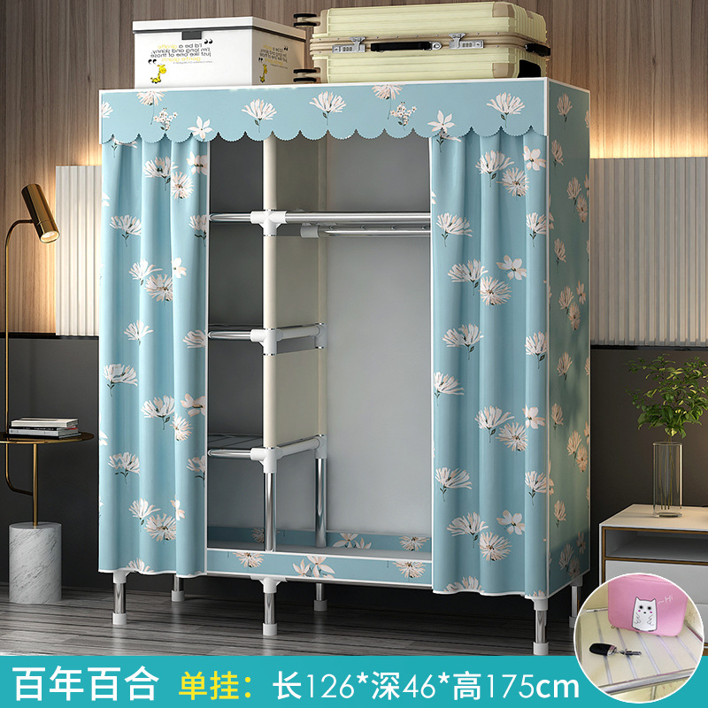 가정용 침실용 간이 옷장 강철 프레임 두꺼운 수납 천 옷장 임대 주택 조립 천 걸이 옷장스토어 가기
