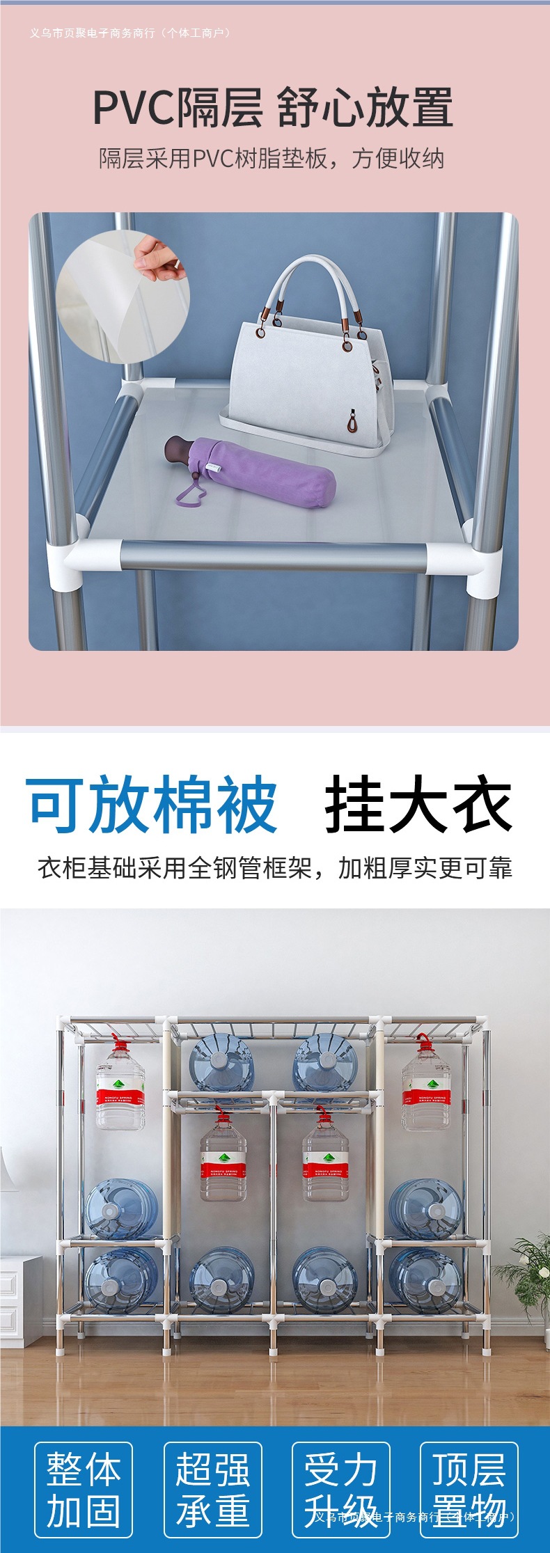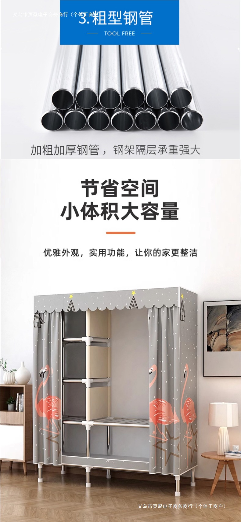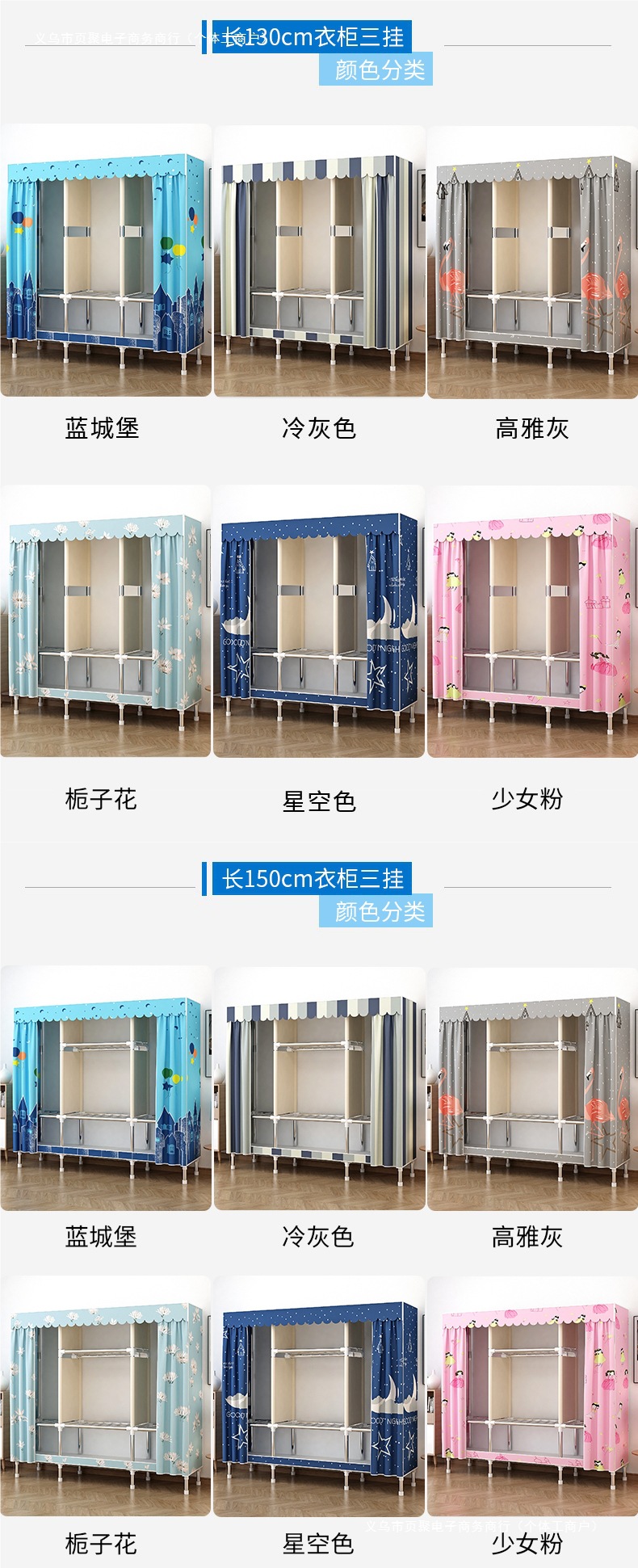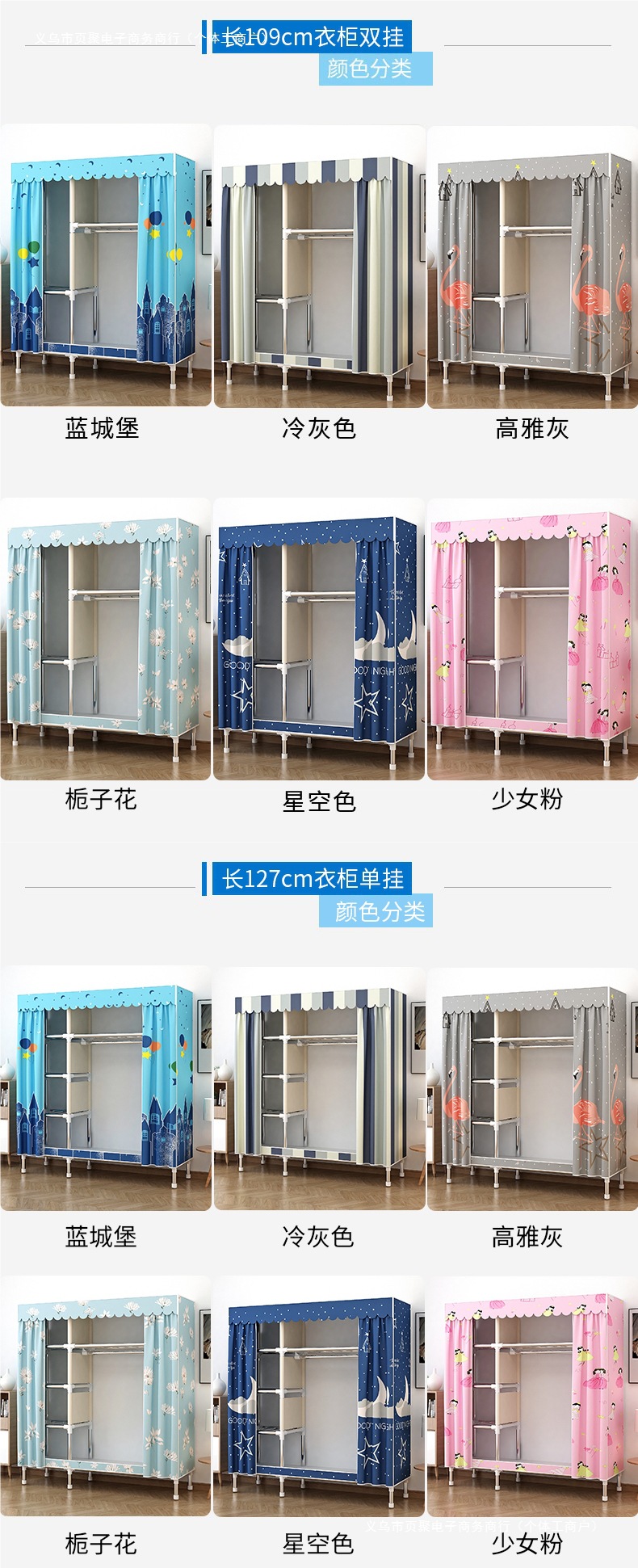 가정용 침실용 간이 옷장 강철 프레임 두꺼운 수납 천 옷장 임대 주택 조립 천 걸이 옷장스토어 가기