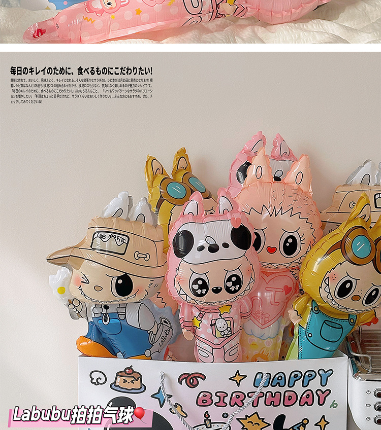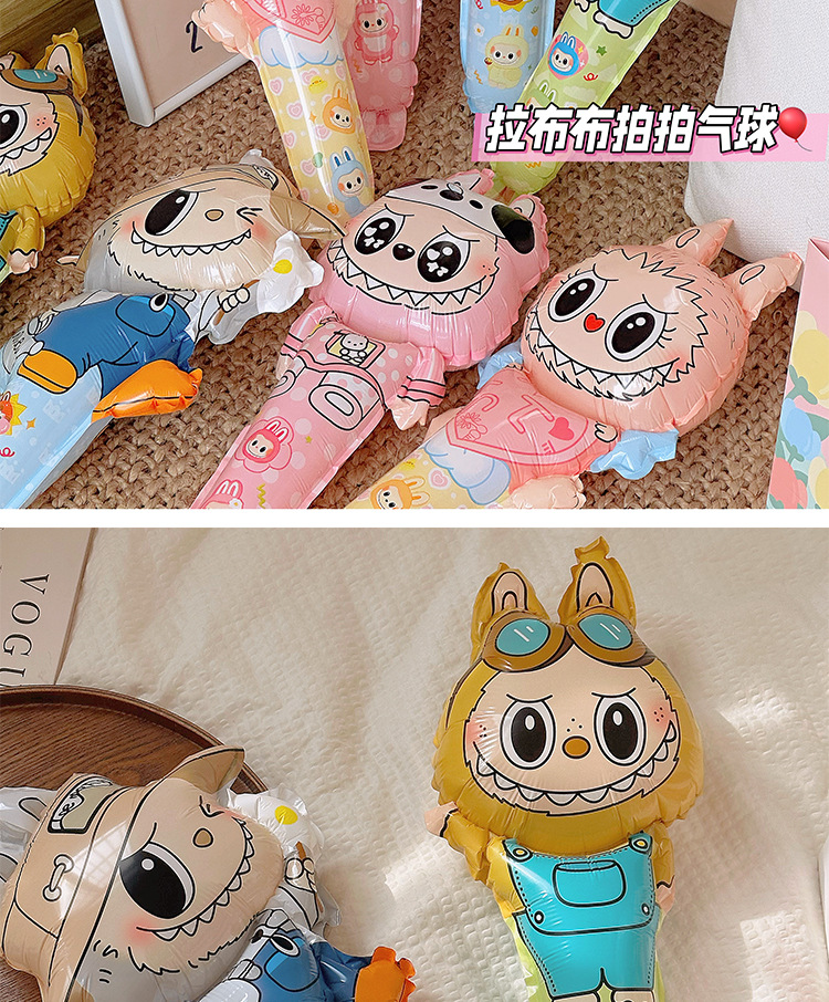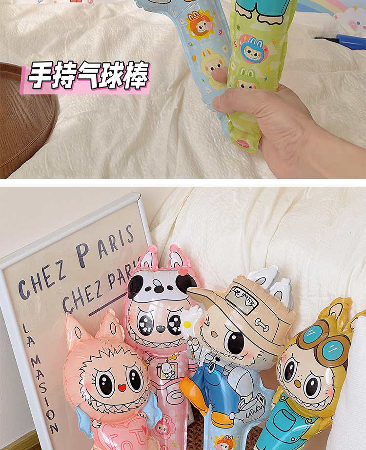 Labubu 알루미늄 필름 풍선 만화 귀여운 어린이 휴일 생일 파티 장식 선물 휴대용 스틱 풍선
