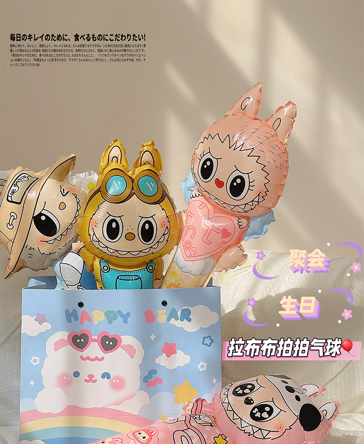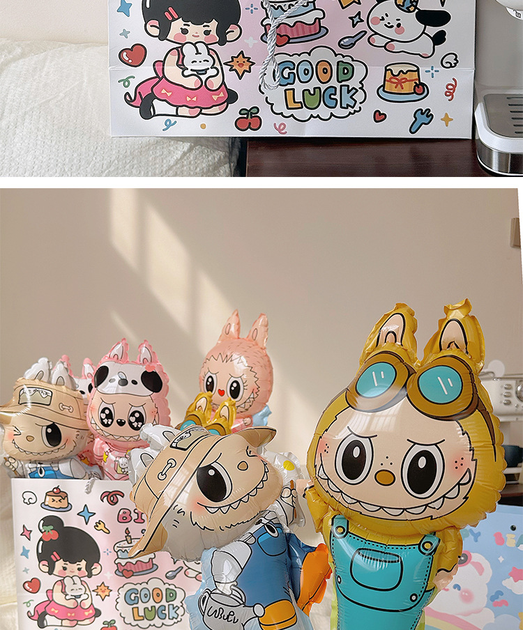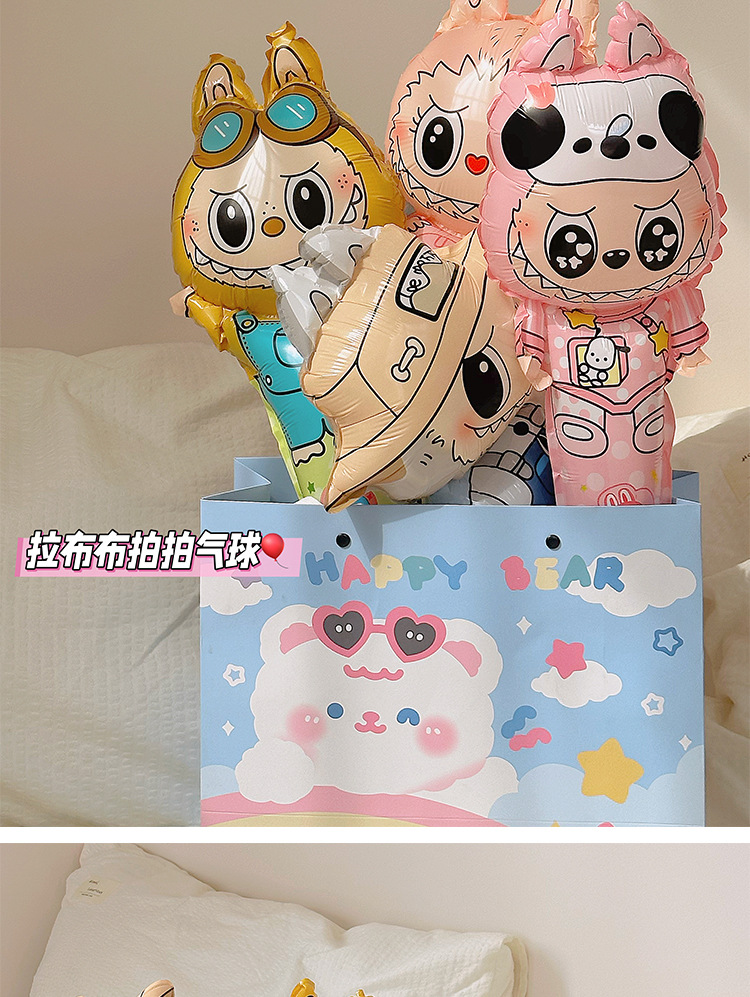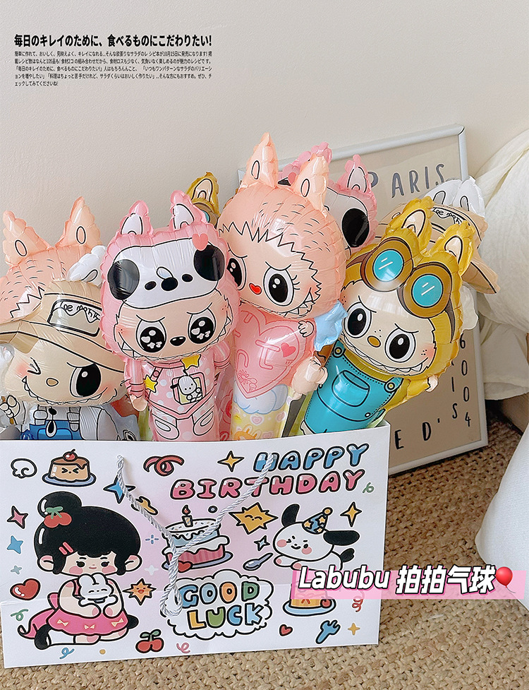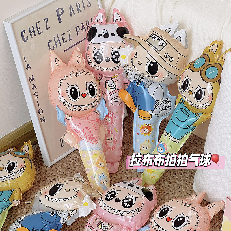Labubu 알루미늄 필름 풍선 만화 귀여운 어린이 휴일 생일 파티 장식 선물 휴대용 스틱 풍선스토어 가기