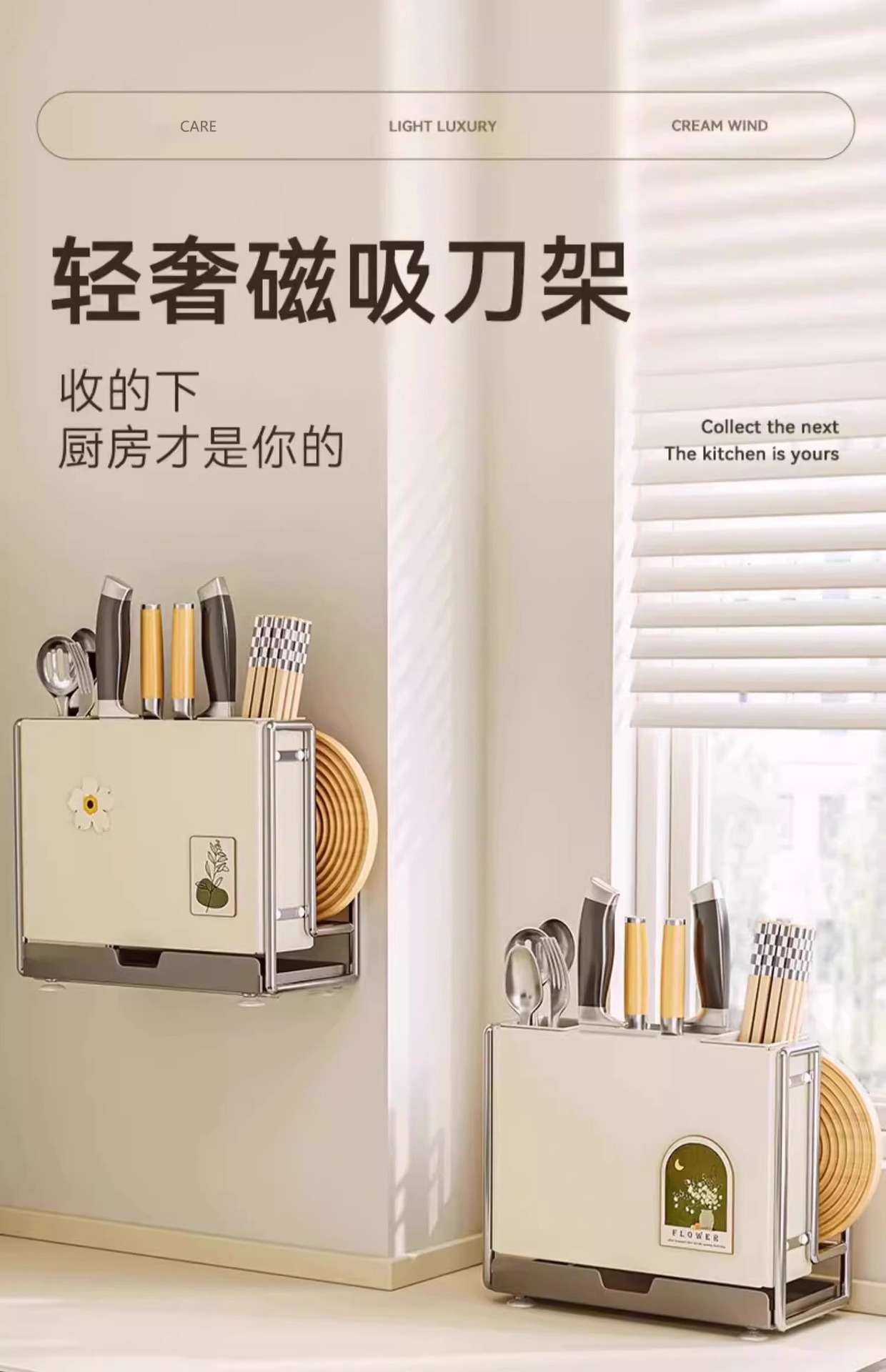 칼걸이, 다기능 주방 젓가락 케이지, 일체형 도마, 자석칼 수납선반, 주방칼 조리대 도마선반