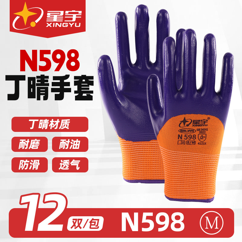 Xingyu 노동 보호 장갑 N598 니트릴 함침 보호 장갑 내마모성 미끄럼 방지 건설 현장 작업 내유성 통기성 장갑스토어 가기