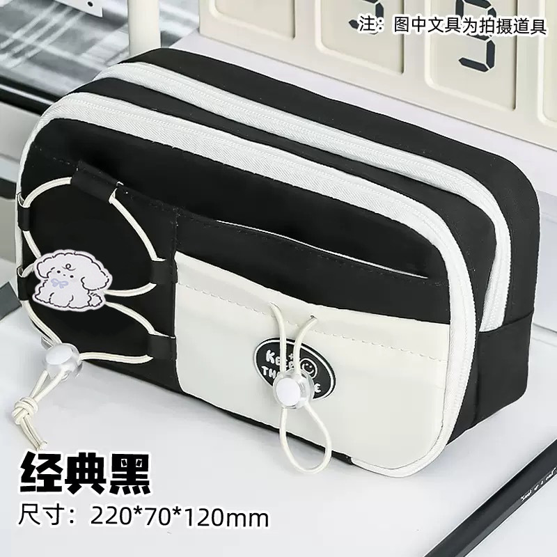 2025년 새로운 한국식 대용량 필통, 멋진 멀티 레이어 드로스트링 디자인 문구 가방, 독창적인 틈새 스타일스토어 가기