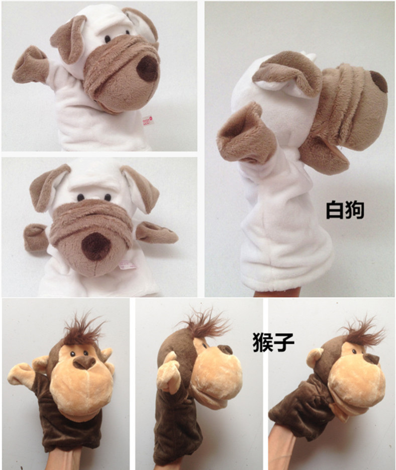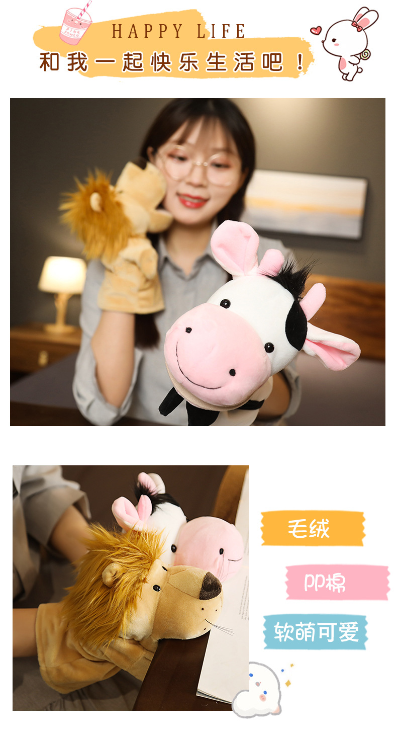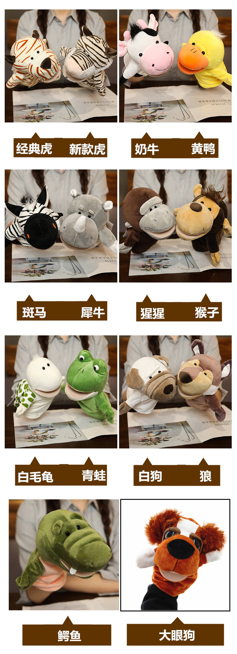 동물 플러시 손 인형 조기 교육 대화 형 쇼 입을 열 수있는 인형 말 소 노란색 오리 사자 양 국경 간 인기 판매