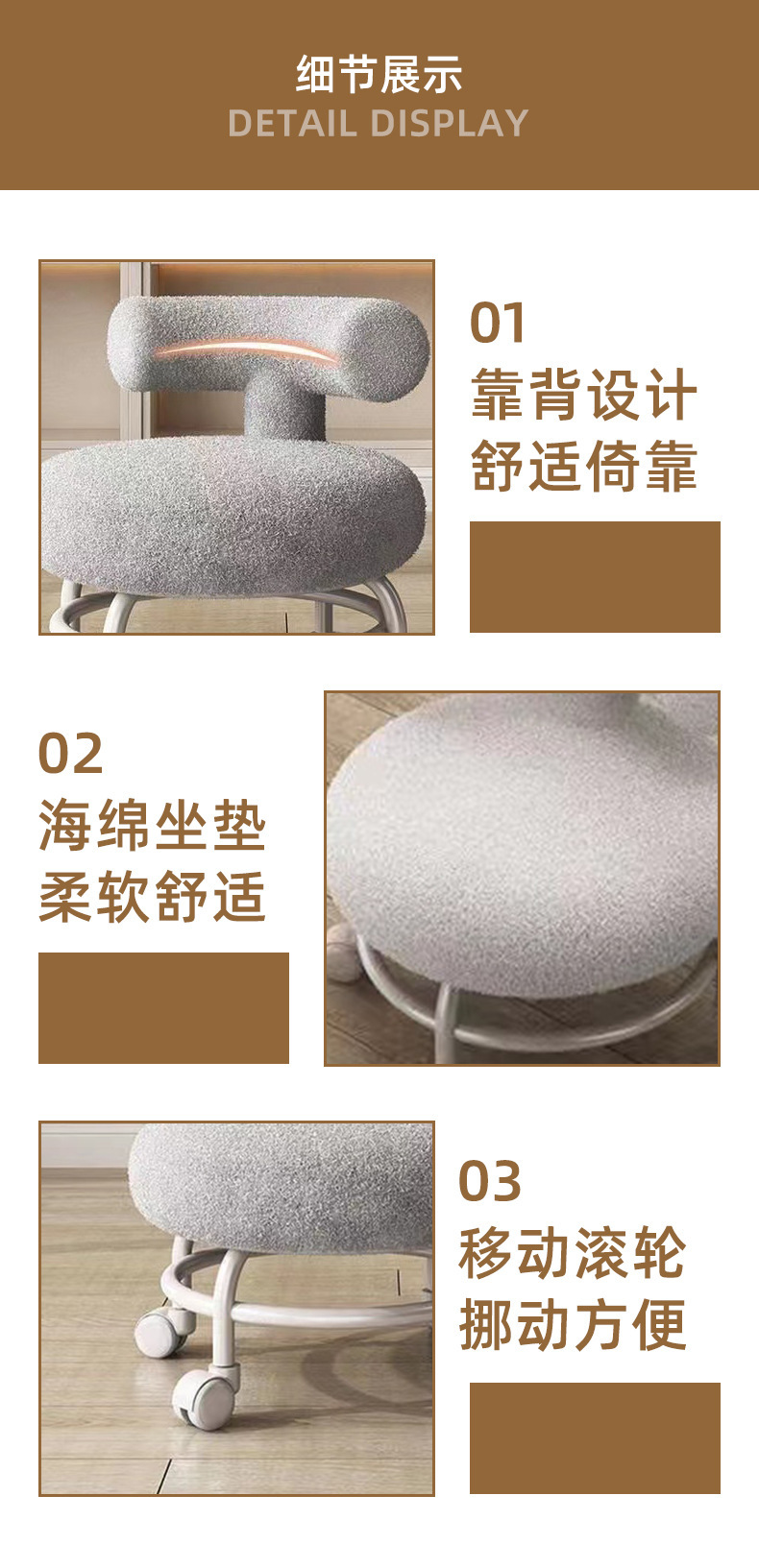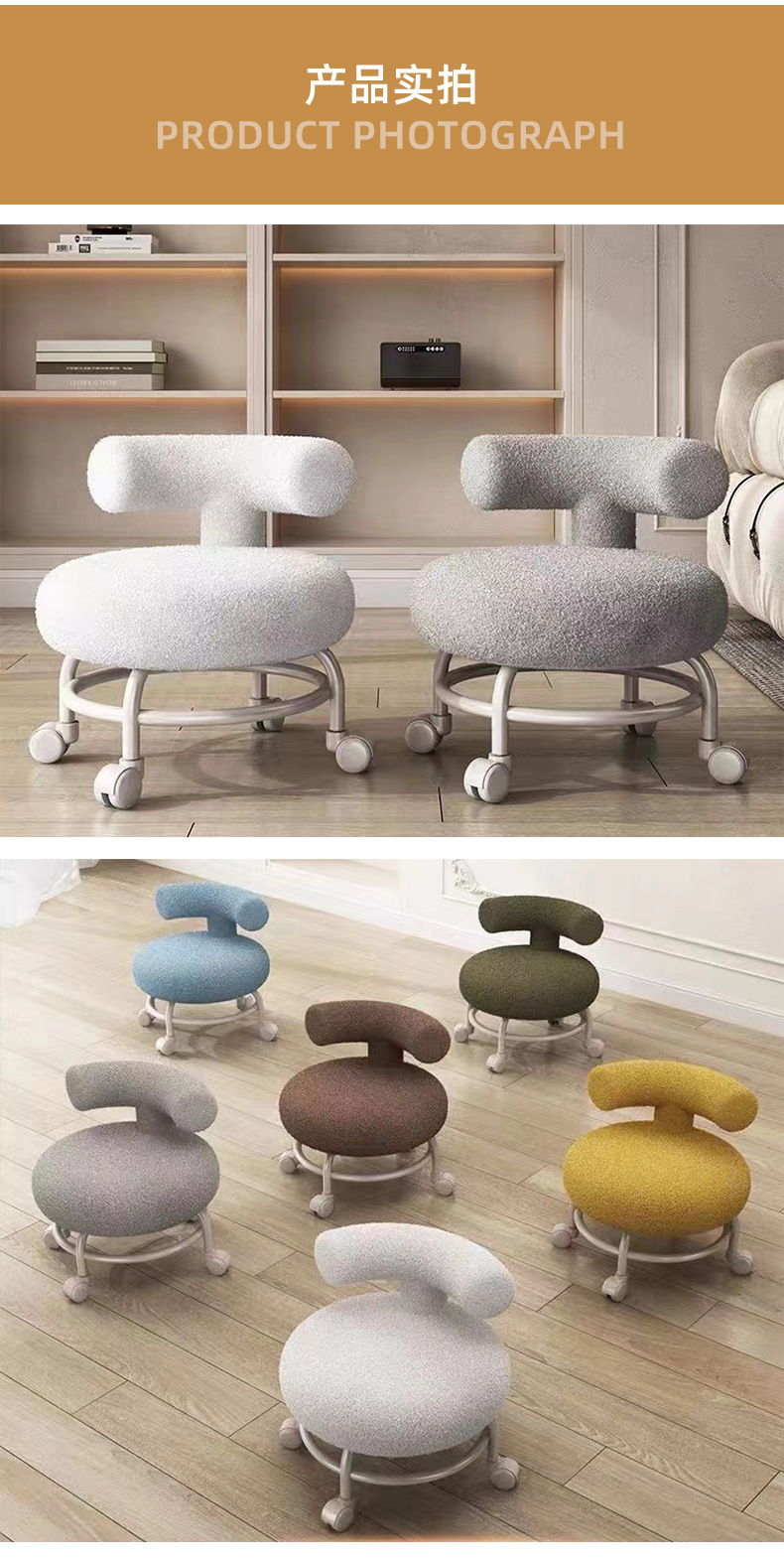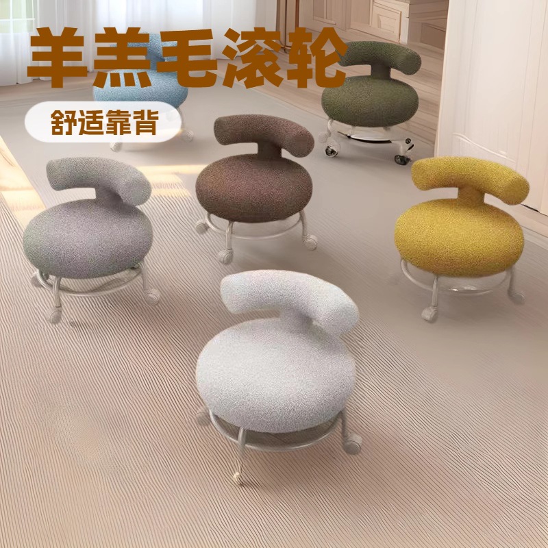 새로운 슬라이딩 휠 로우 스툴 라운드 스툴 인터넷 연예인 램스울 모바일 소형 소파 작은 스툴 등받이 의자 무음 휠 범용 휠