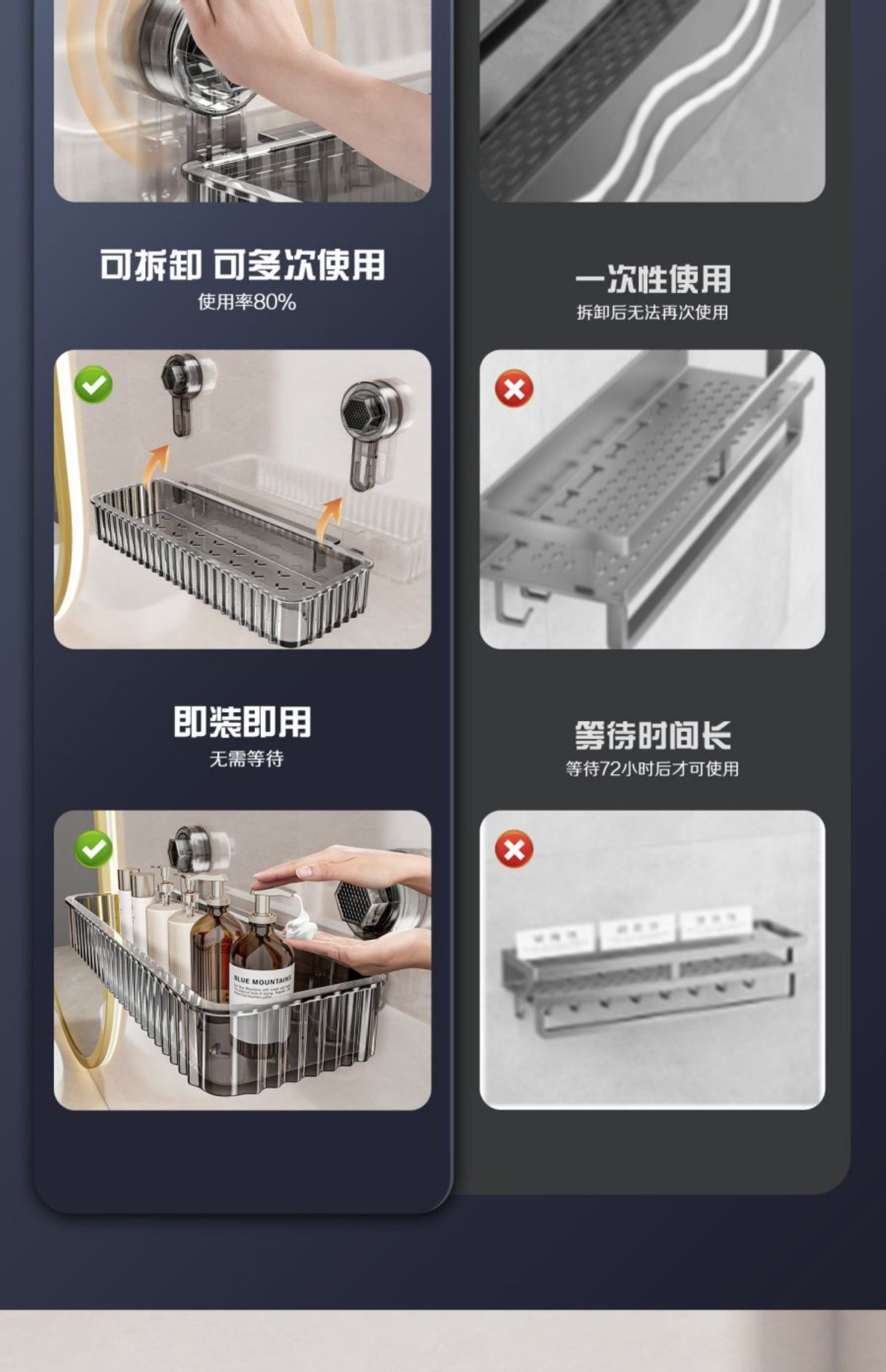 흡착식 세면대 수납선반, 펀치프리 수도꼭지 수납선반, 화장실 세면대 거울 전면 수납선반, 벽걸이형스토어 가기