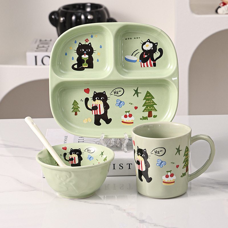 성인용 세라믹 칸막이 접시, 고급스러운 아침 식사 접시, 지방 감량 접시, 가정용 3칸 접시 세트, 산후 접시스토어 가기