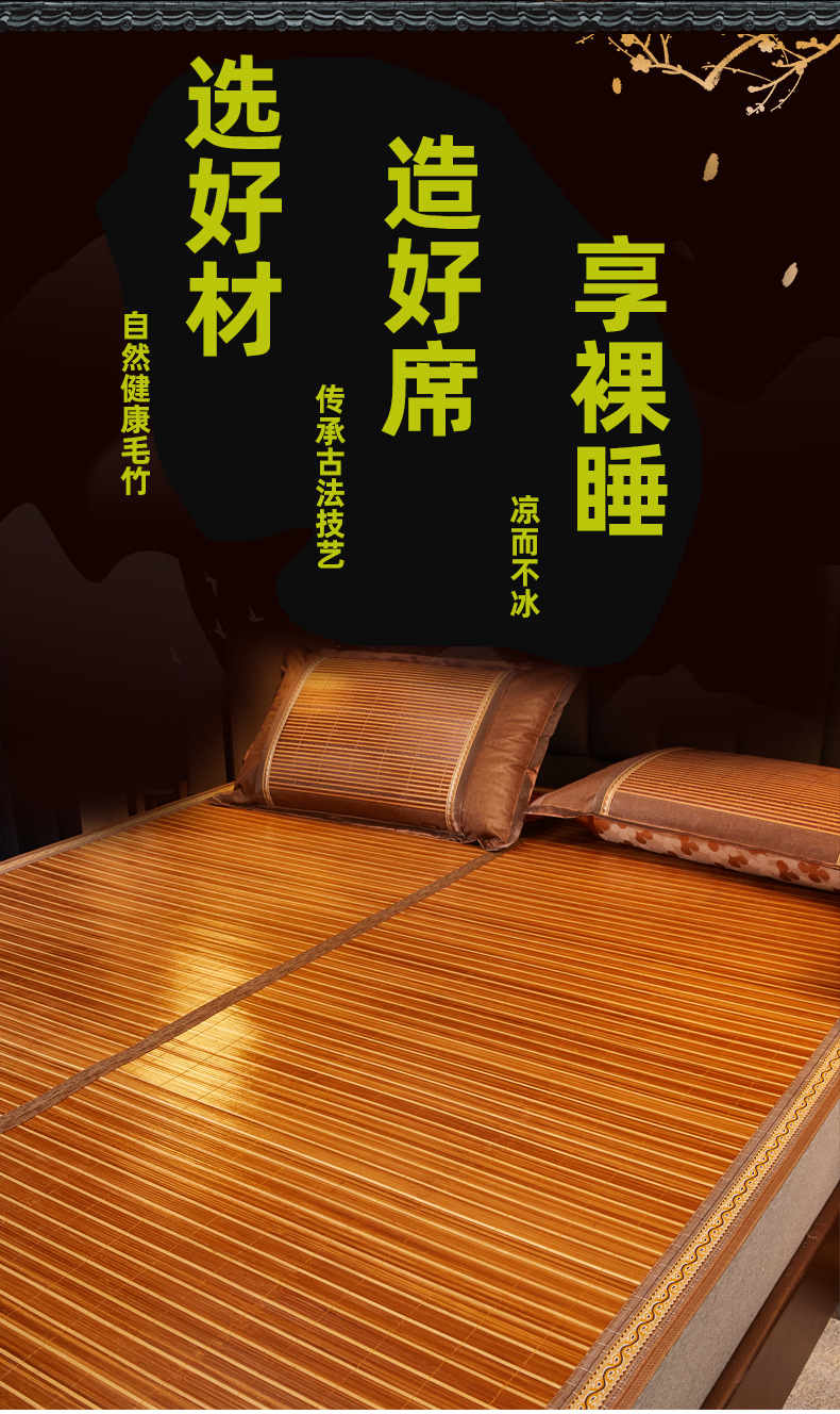 대나무 매트, 양면 매트, 양면 가정용 구식 등나무 매트, 싱글 접이식 얼음 실크 대나무 여름