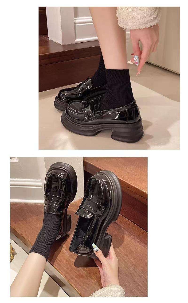둥근 발가락 두꺼운 밑창 검은 색 두꺼운 굽 작은 가죽 신발 여성용 영국 로퍼 2025 새로운 복고풍 다목적 jk 정장 신발스토어 가기