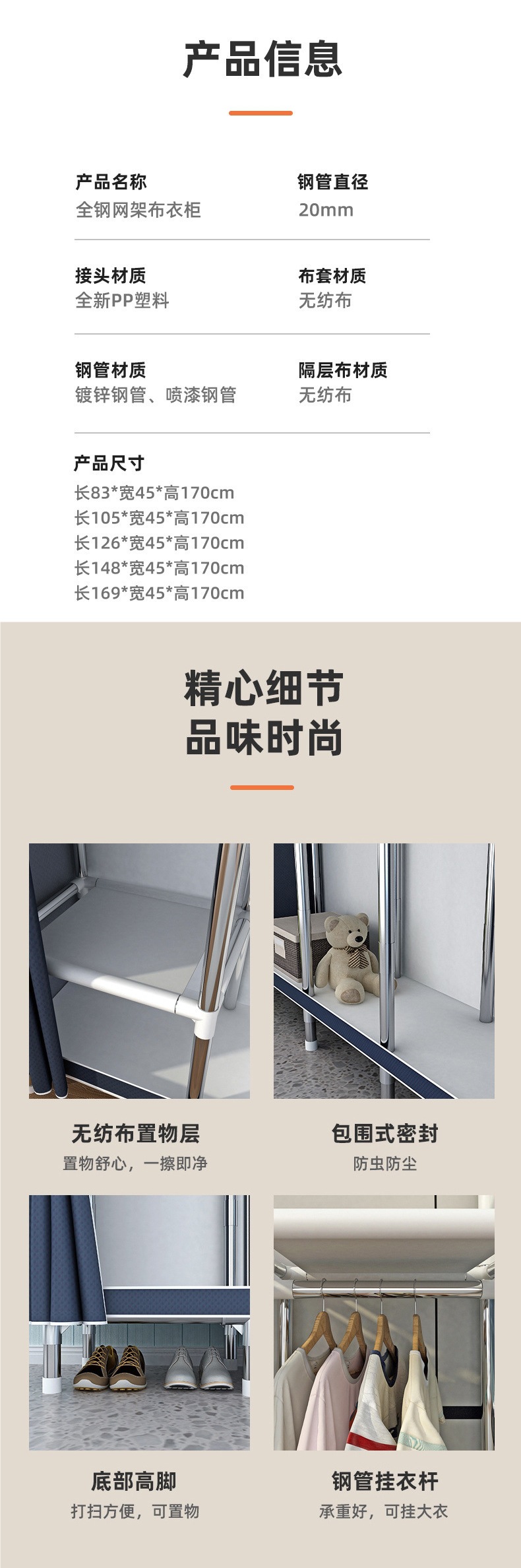 옷장 홈 침실 조립 천 옷장 전체 강철 프레임 두꺼운 간단한 천 옷장 렌탈 하우스용 옷장스토어 가기