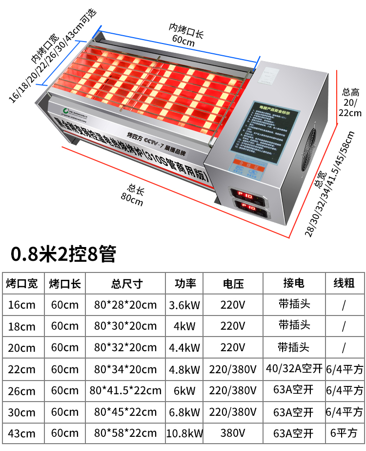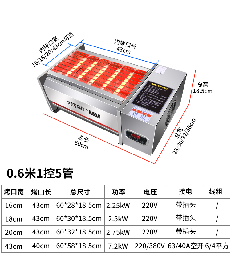 • 0.6m 그릴 입 43× 20cm 상업용 버전