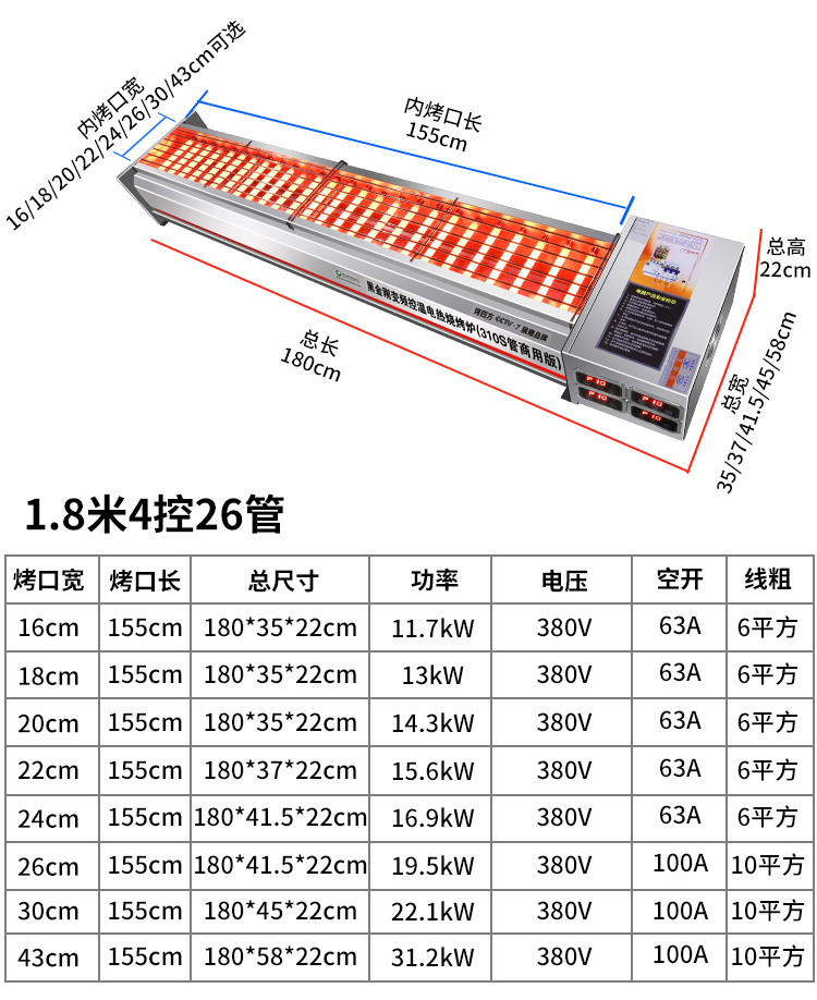 • 1.8m 제어 그릴 포트 125× 20cm 상업용