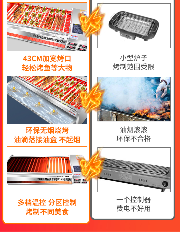전기 그릴 블랙 다이아몬드 전기 그릴 상업용 무연 대형 전기 그릴 굴 양고기 꼬치 바베큐 그릴 다기능스토어 가기