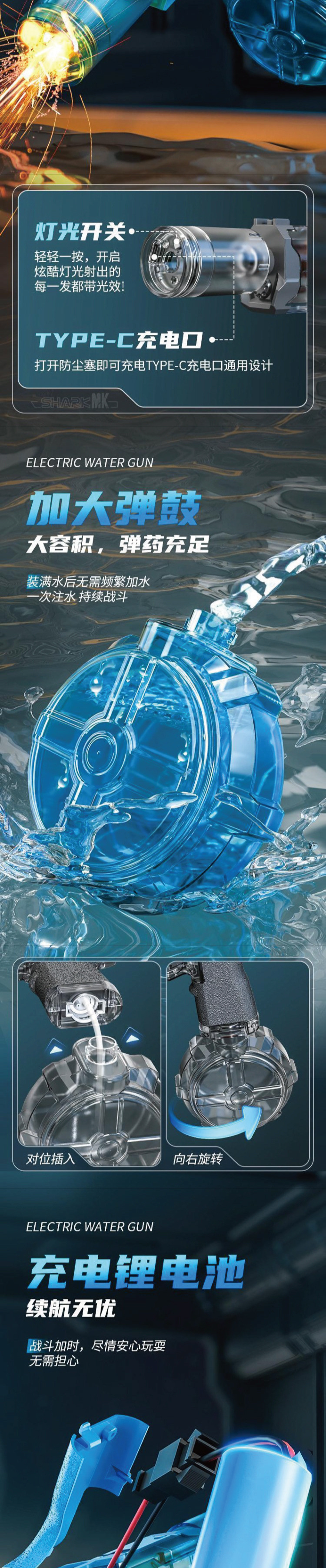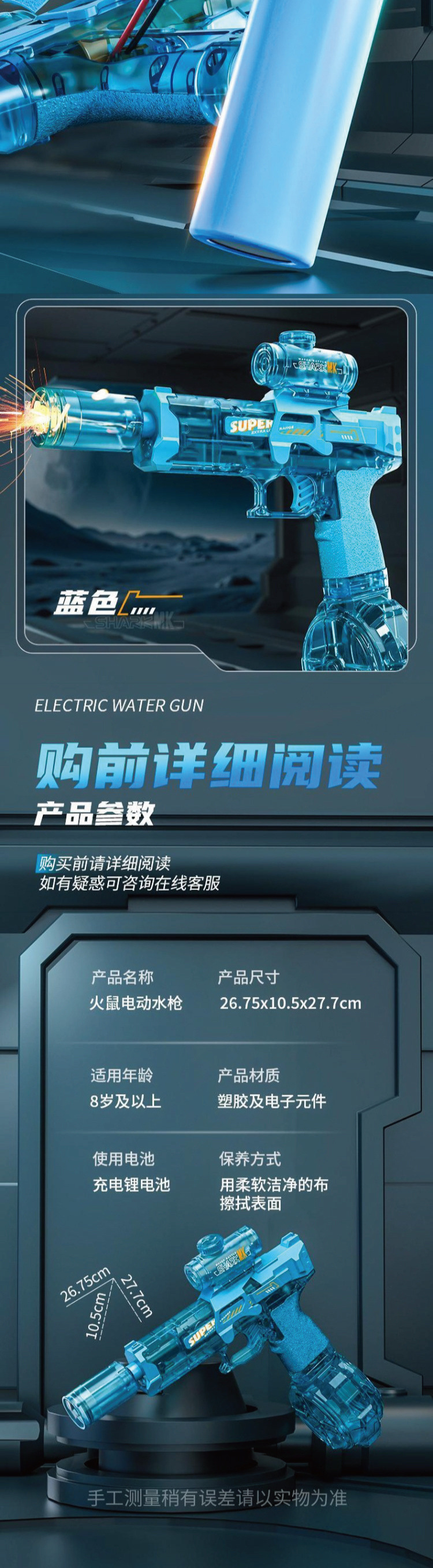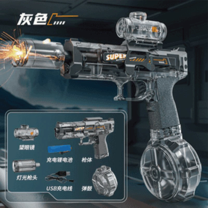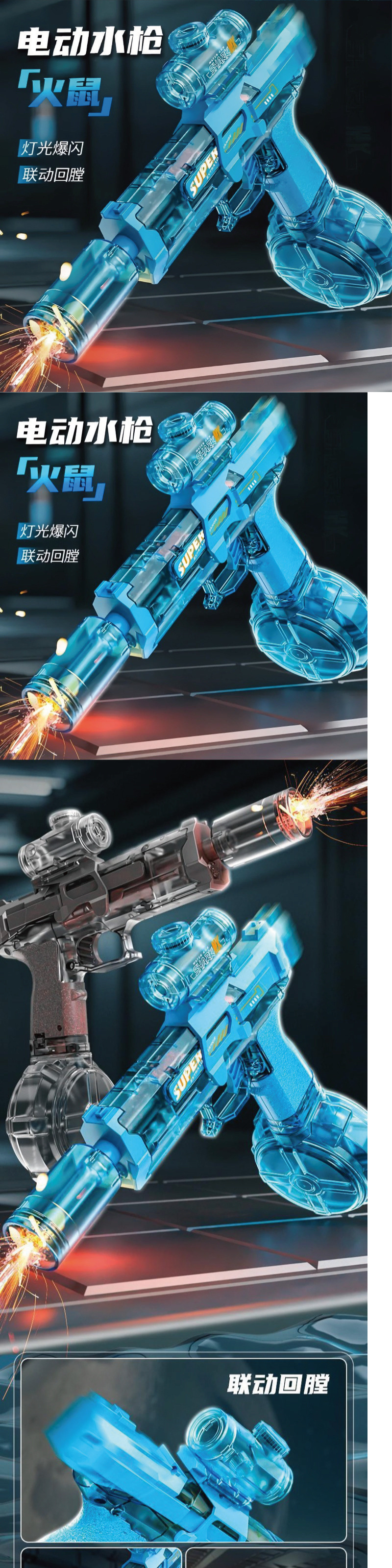 2025 새로운 불꽃 얼음 마우스 전기 물총 어린이 장난감 인터넷 연예인 블랙 기술 물 스프레이 건 고압 자동 연속 발사