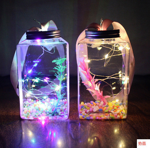 • 병 + 라이트 스트립 + 컬러 스톤 + 수생 식물 + 리본 + 산소화