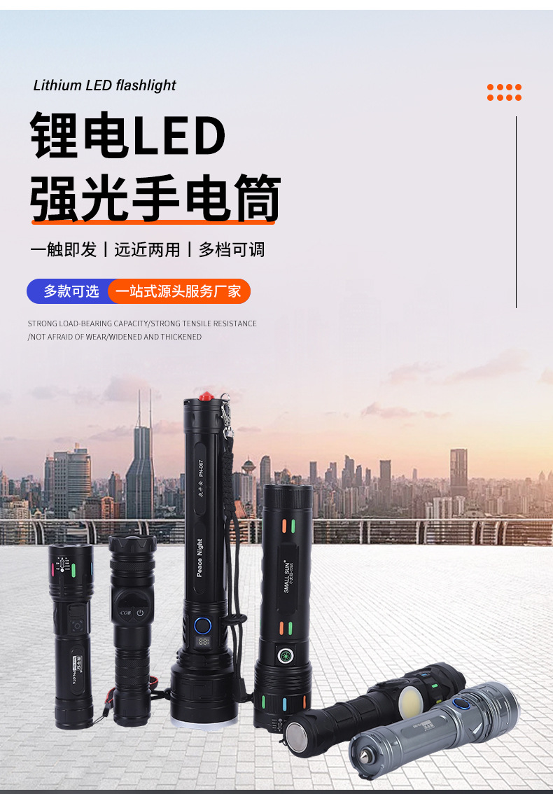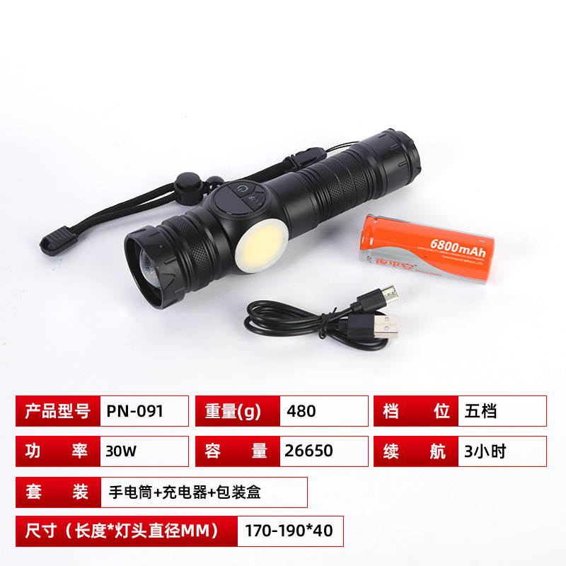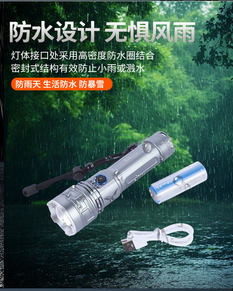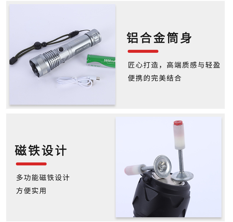 도매 LED 리튬 전기 강한 빛 손전등 야외 방수 USB 텔레스코픽 줌 고전력 손전등스토어 가기