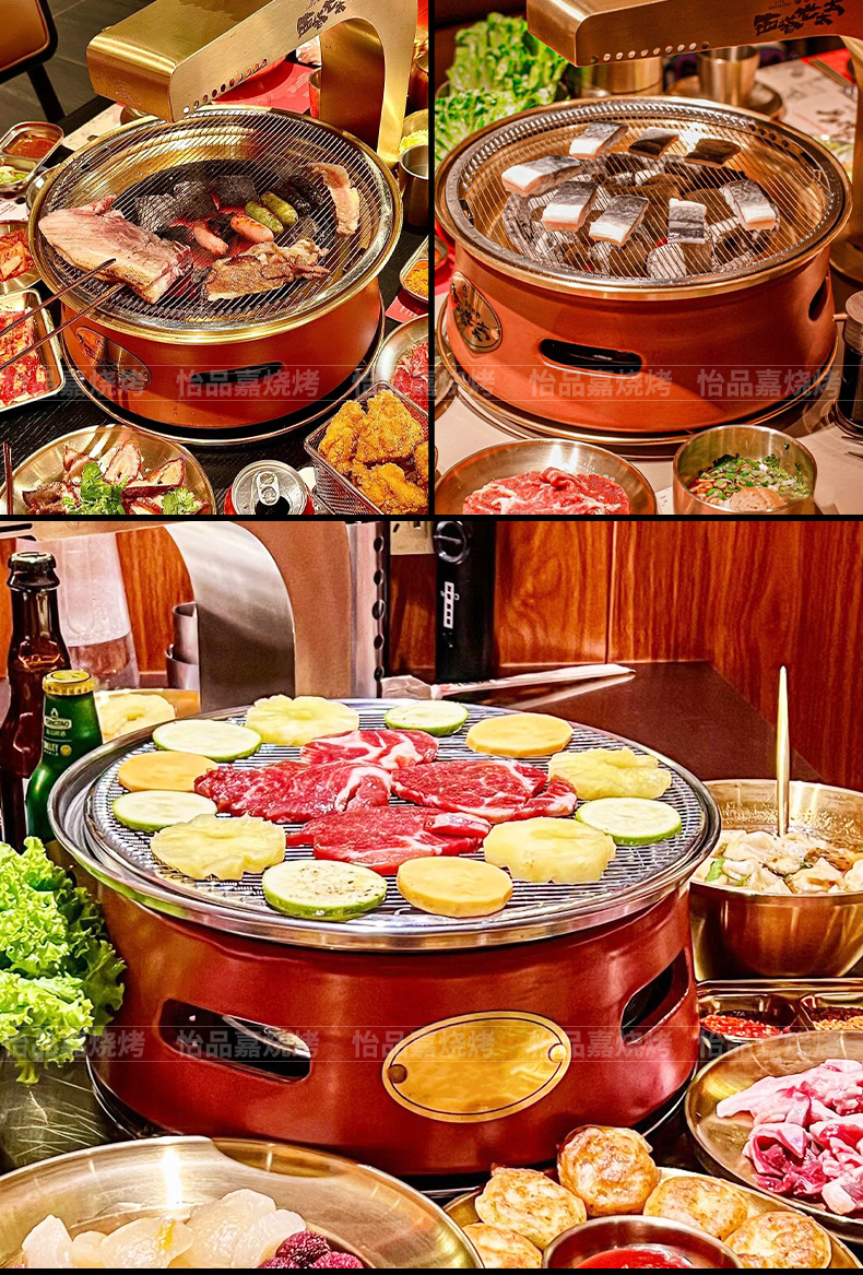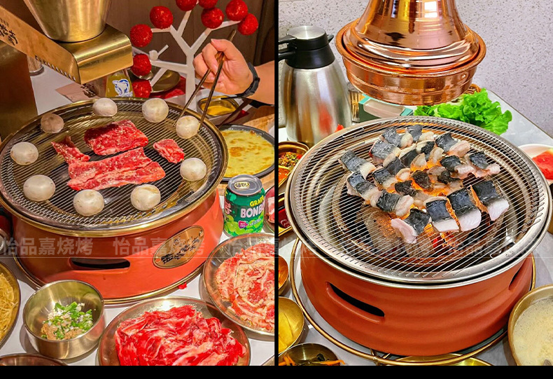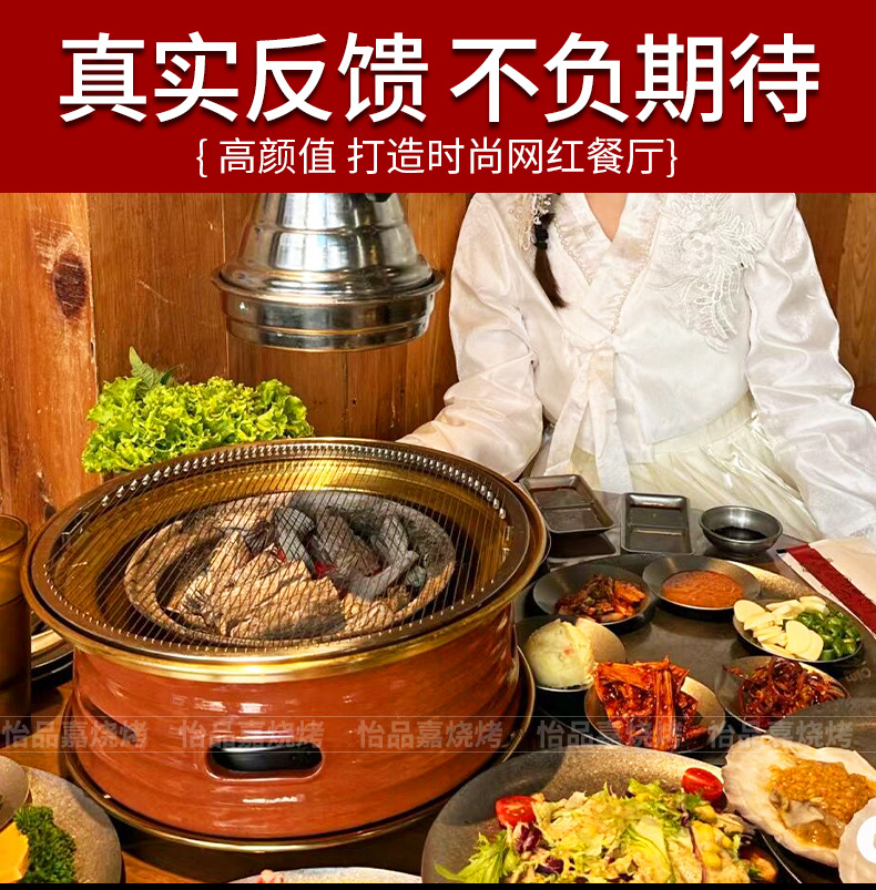 한국식 바베큐 가게 숯불 그릴 대형 원형 바베큐 그릴 인터넷 연예인 시타 할머니 진흙 난로 상업용 숯불 그릴스토어 가기