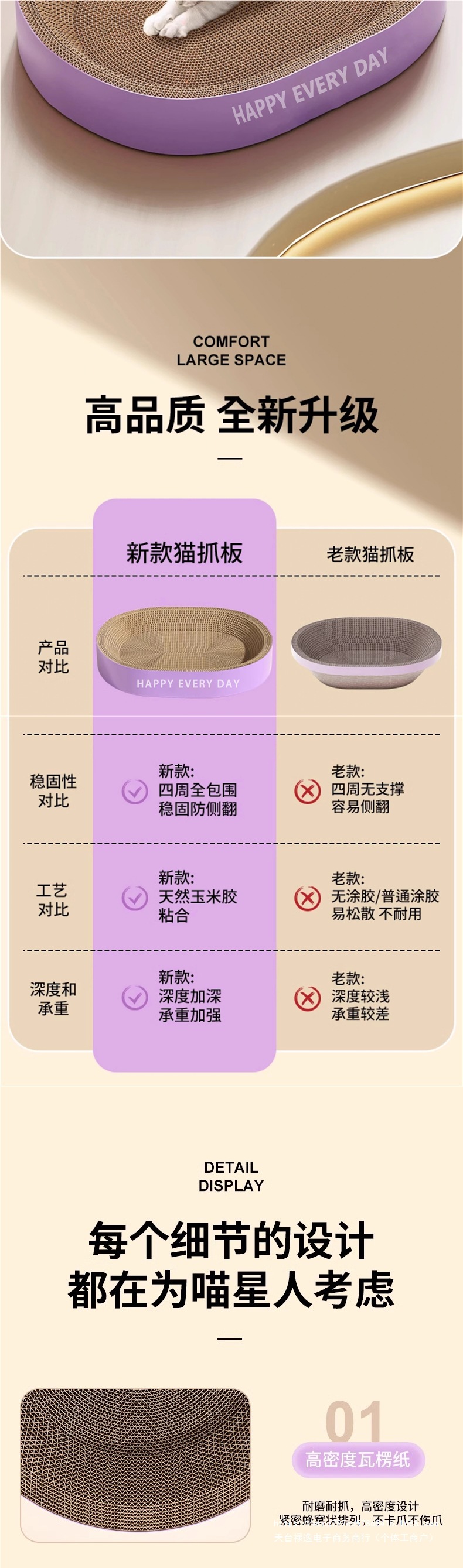 둥근 고양이 스크래치 보드, 고양이 둥지, 일체형, 방충, 내마모성, 긁힘 방지, 부스러기 없음, 초대형 골판지 고양이 발톱 그릇, 깨지지 않음