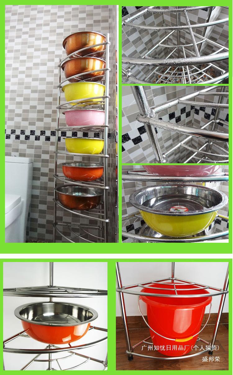 제조업체 다층 두꺼운 세면대 스테인레스 스틸 바닥 스탠딩 스토리지 랙 삼각형 랙 주방 욕실 제조업체스토어 가기