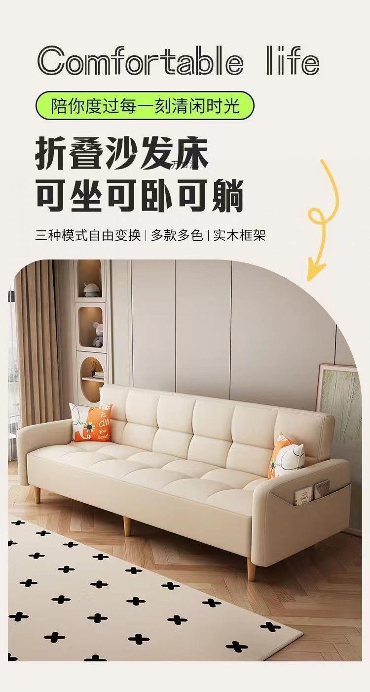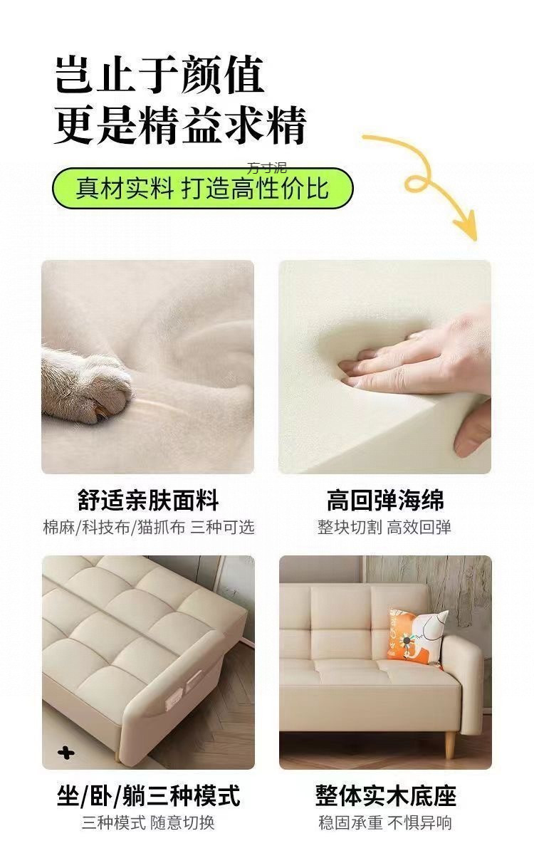 접이식 소파 베드, 거실용 겸용, 고양이 발톱 가죽 접이식, 간단하고 내구성이 뛰어난 소형 아파트 임대 주택 직렬 공장스토어 가기