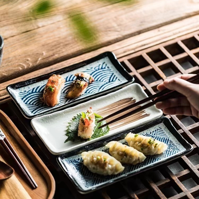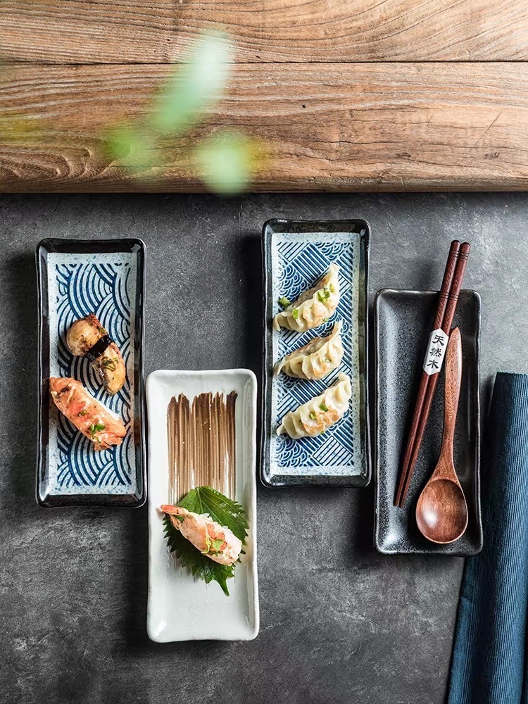 직사각형 스시 접시 일본식 상업용 가정용 식기 크리 에이 티브 세라믹 접시 만두 접시 디저트 접시 구운 날개 접시스토어 가기