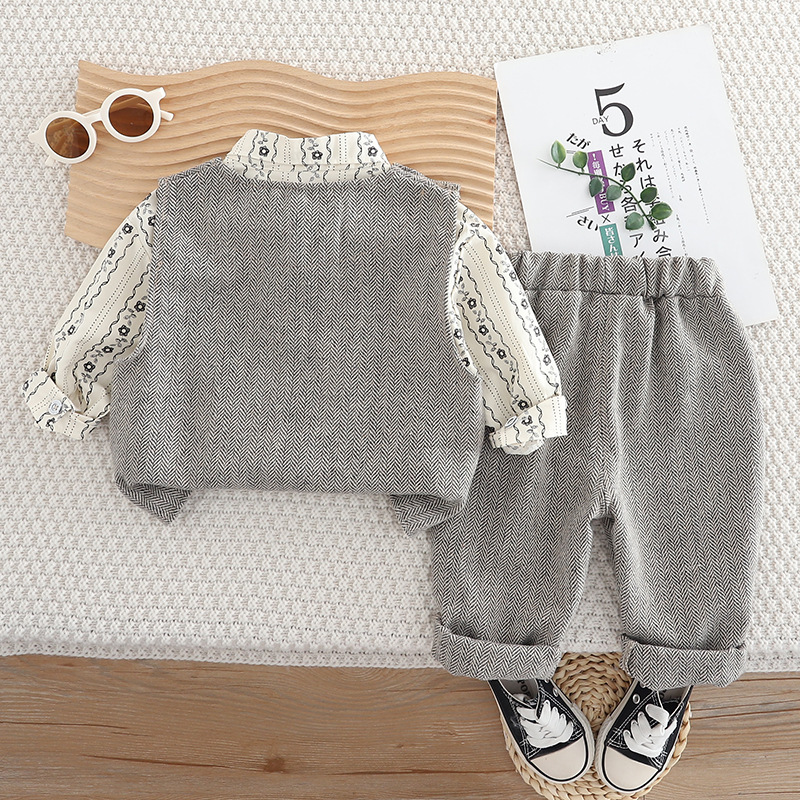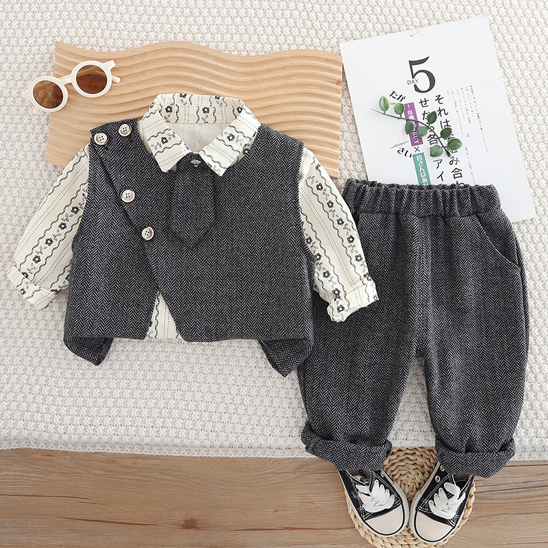소년 가을 한국식 정장 정장 2025 새로운 봄, 가을 아기 어린이 스타일 조끼 셔츠 3 피스 세트