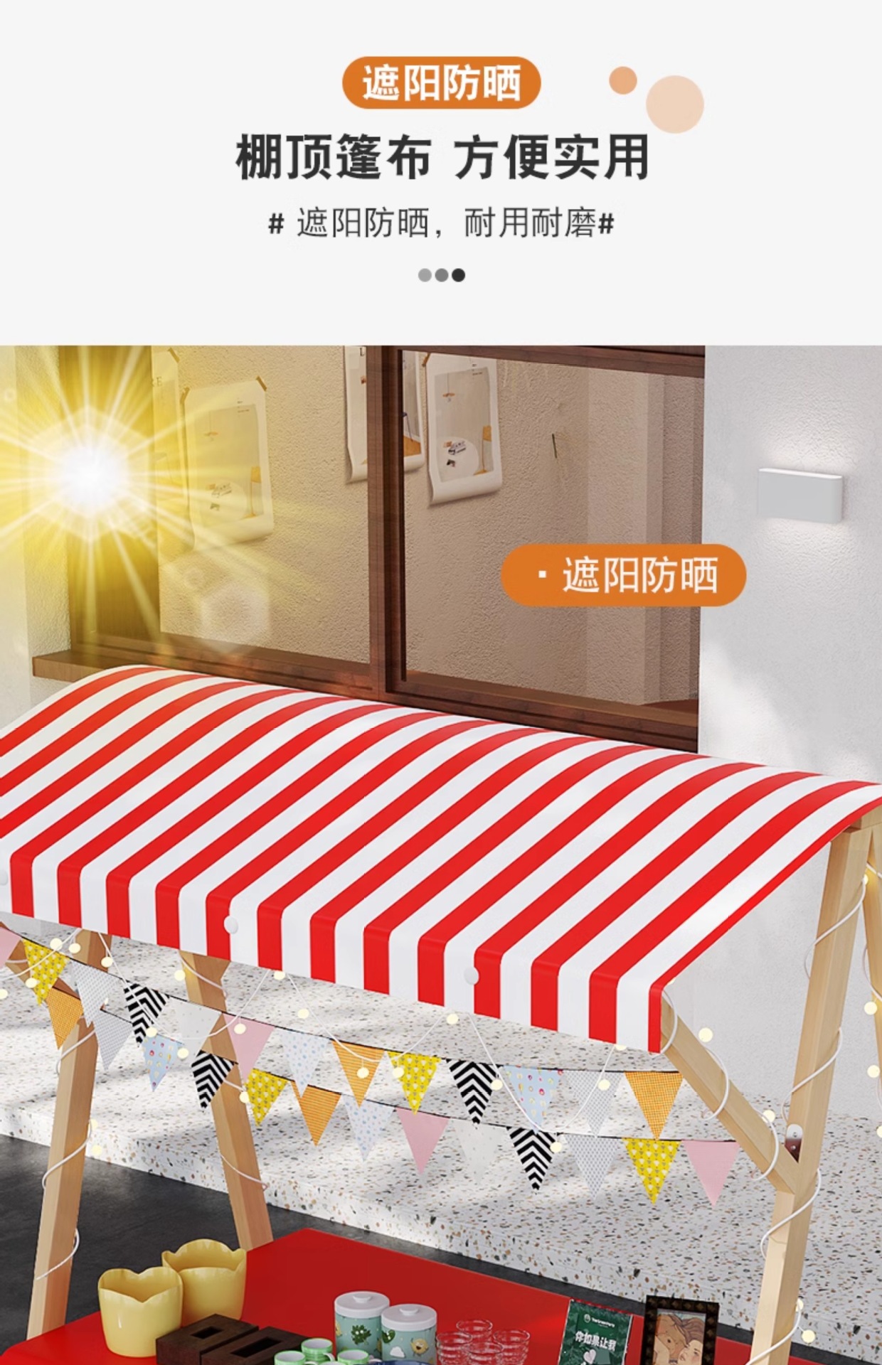 • 주황색과 흰색 창고 천 + 주황색과 흰색 식탁보