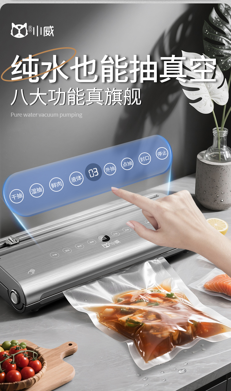 도매 Xiaowei 이중 펌프 진공 밀봉 기계 소형 가정용 상업용 식품 보존 포장 기계 플라스틱 밀봉 완전 자동스토어 가기