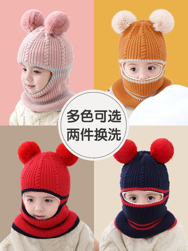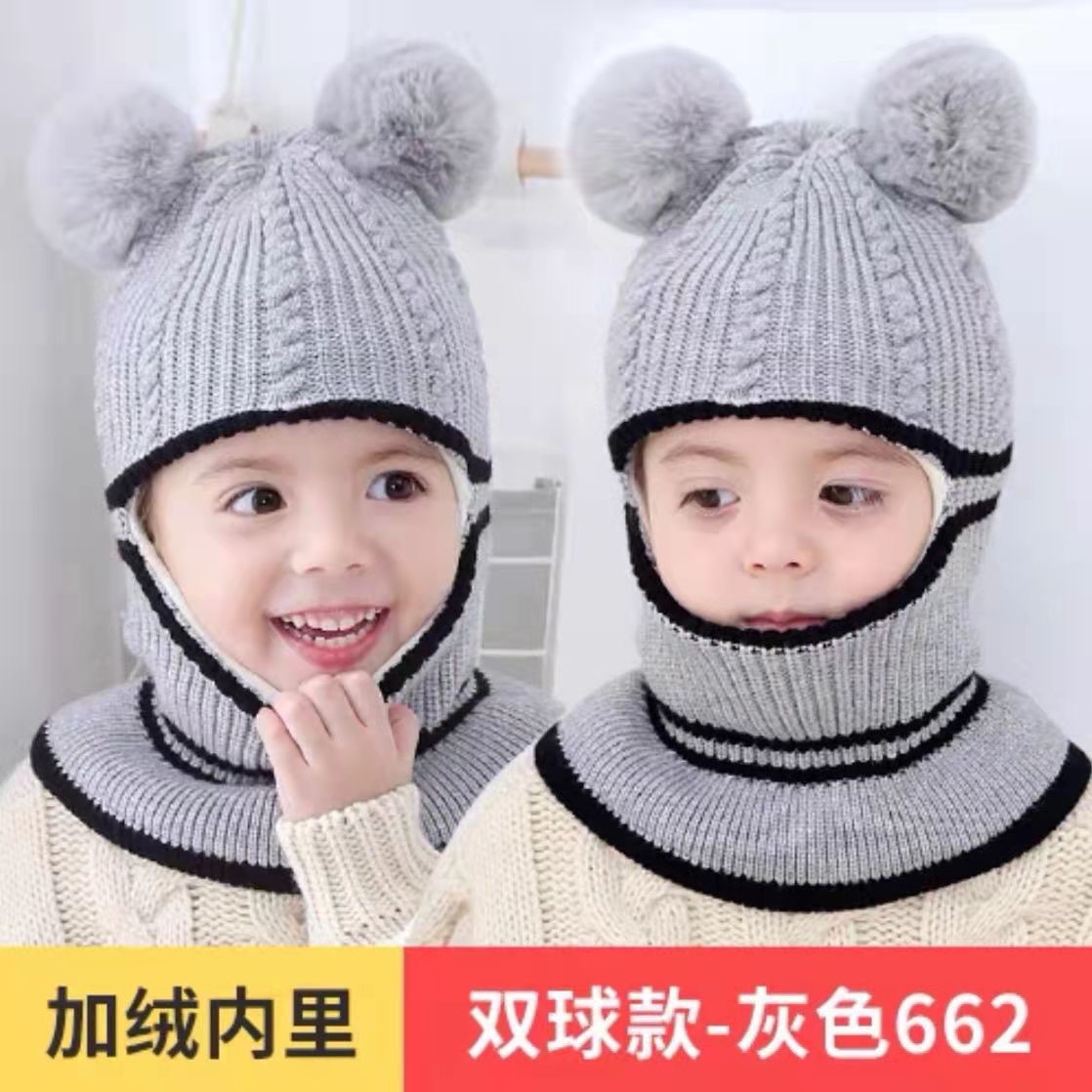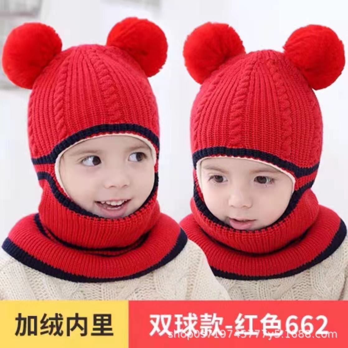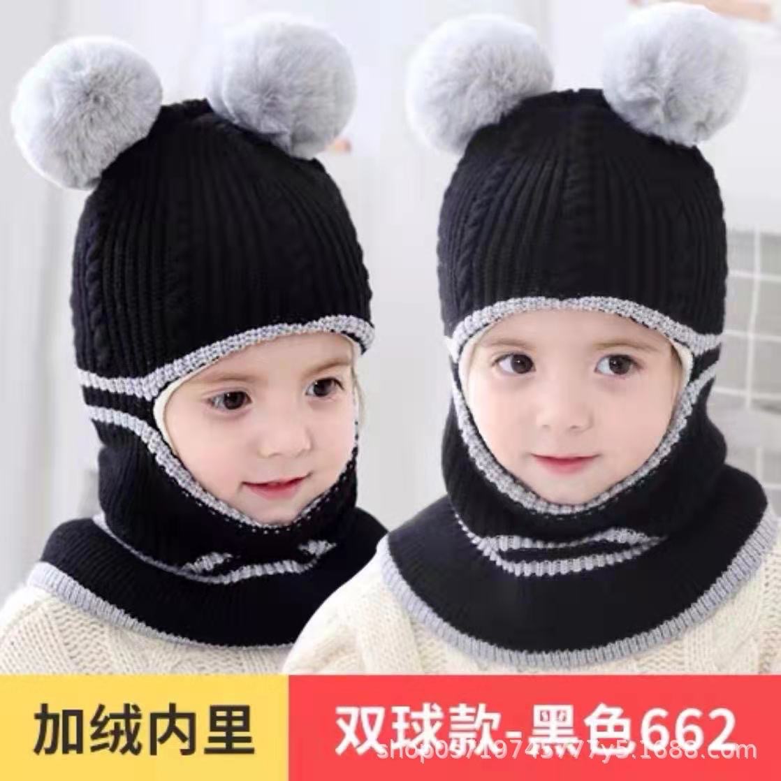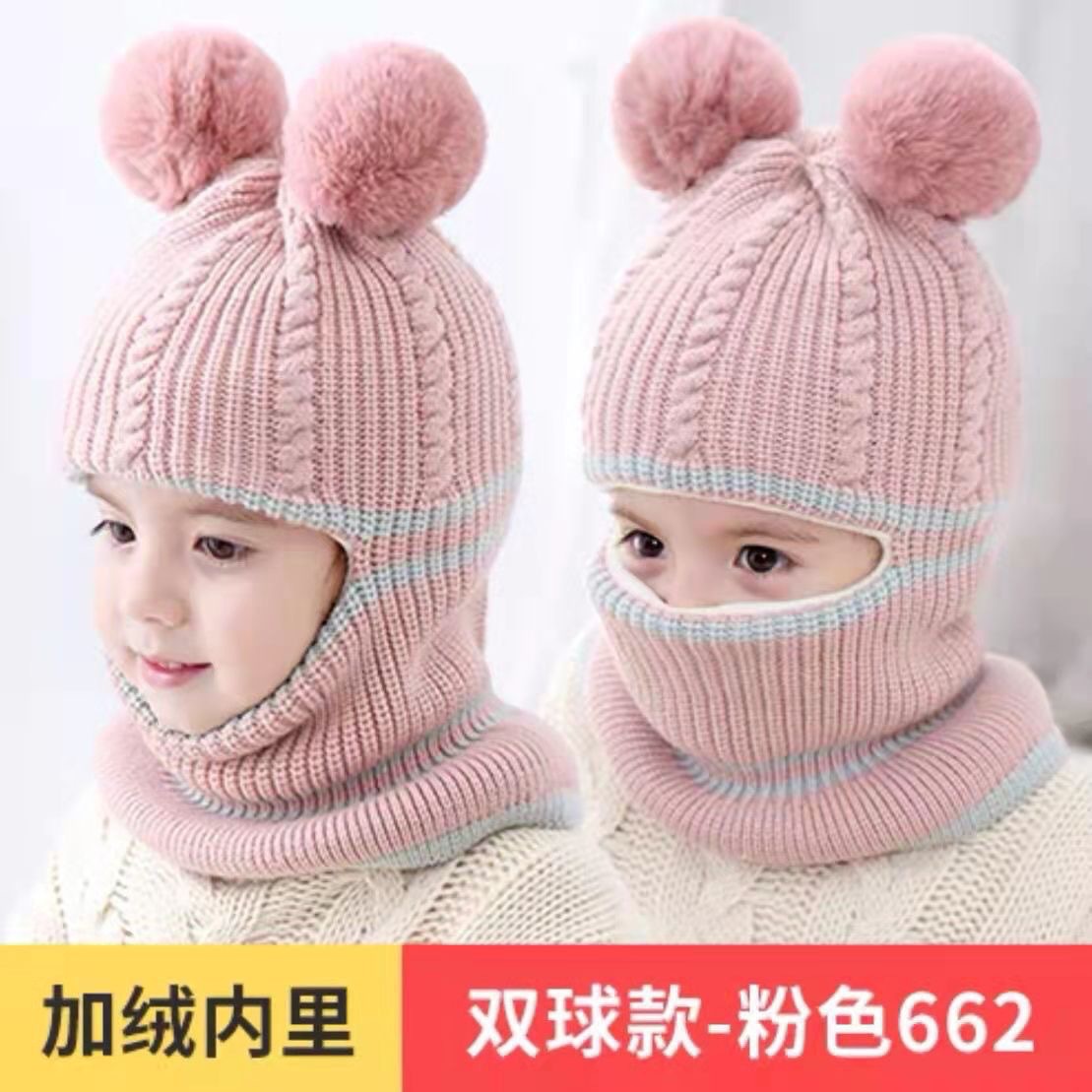 어린이 모자 가을 겨울 아기용 플러스 벨벳 두꺼운 니트 모자 여자아이 귀 보호 목도리 일체형 모자 귀 보호 및 보온