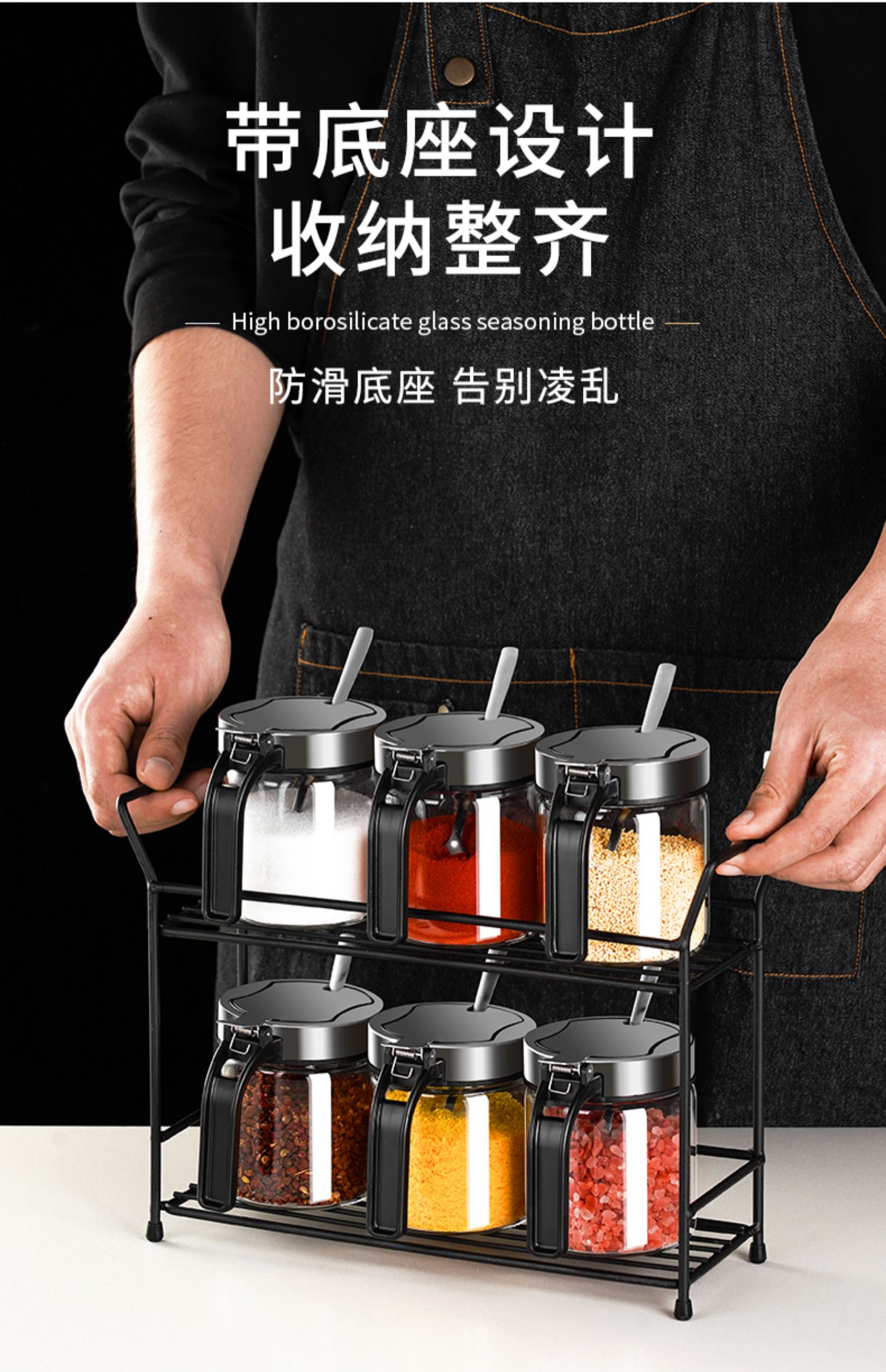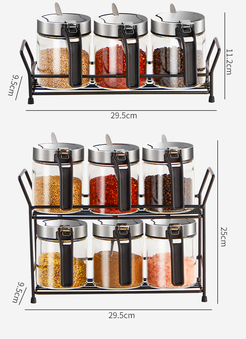 • 7종 콤비네이션 세트: 304 스틸 뚜껑 양념통*6+이중 철제 선반(무료 작은 스푼+라벨)