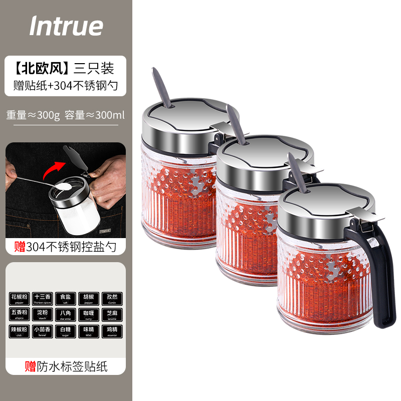• 3종 세트: 304 스틸 뚜껑 양념통*3(무료 작은 스푼 + 라벨)