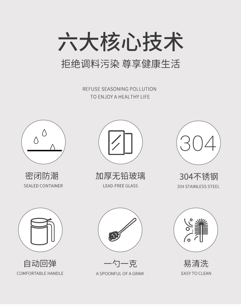 • 5종 세트: 304 스틸 뚜껑 양념통*5(무료 작은 스푼 + 라벨)