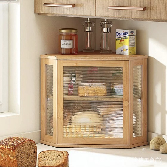 나무 빵 보관 상자 더블 레이어 주방 조리대 코너 보관 상자 투명 토스트 빵 보관 상자스토어 가기