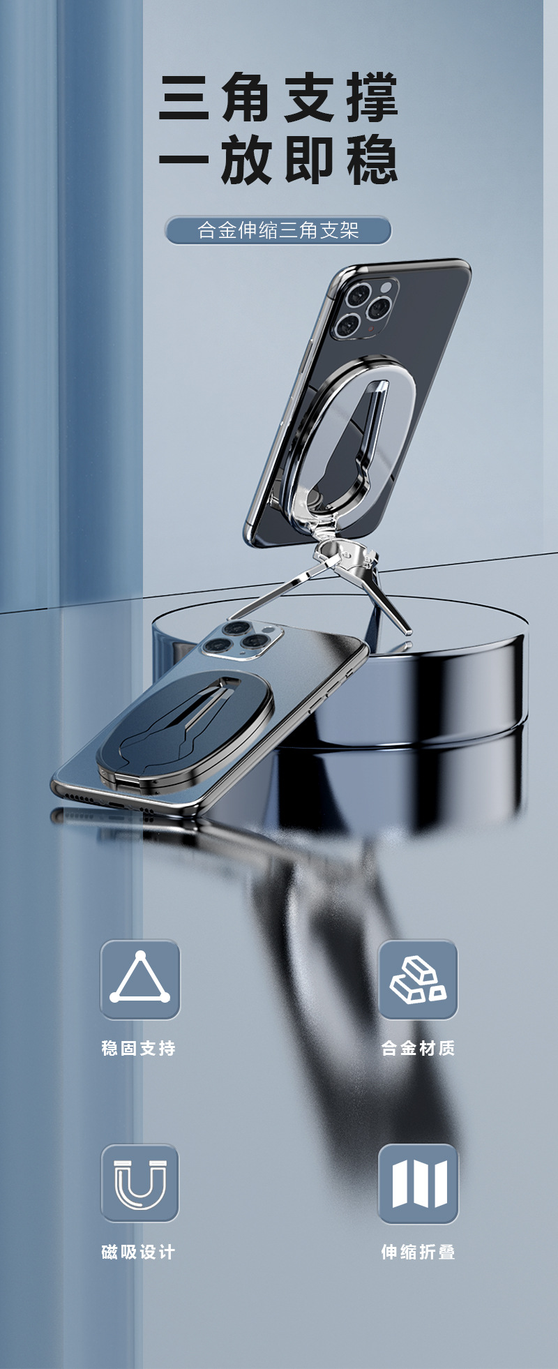 국경 간 인기 판매 휴대폰 홀더, 휴대폰 뒷면 삼각형 안정적인 데스크탑 홀더, 다기능 게으른 라이브 방송 홀더스토어 가기