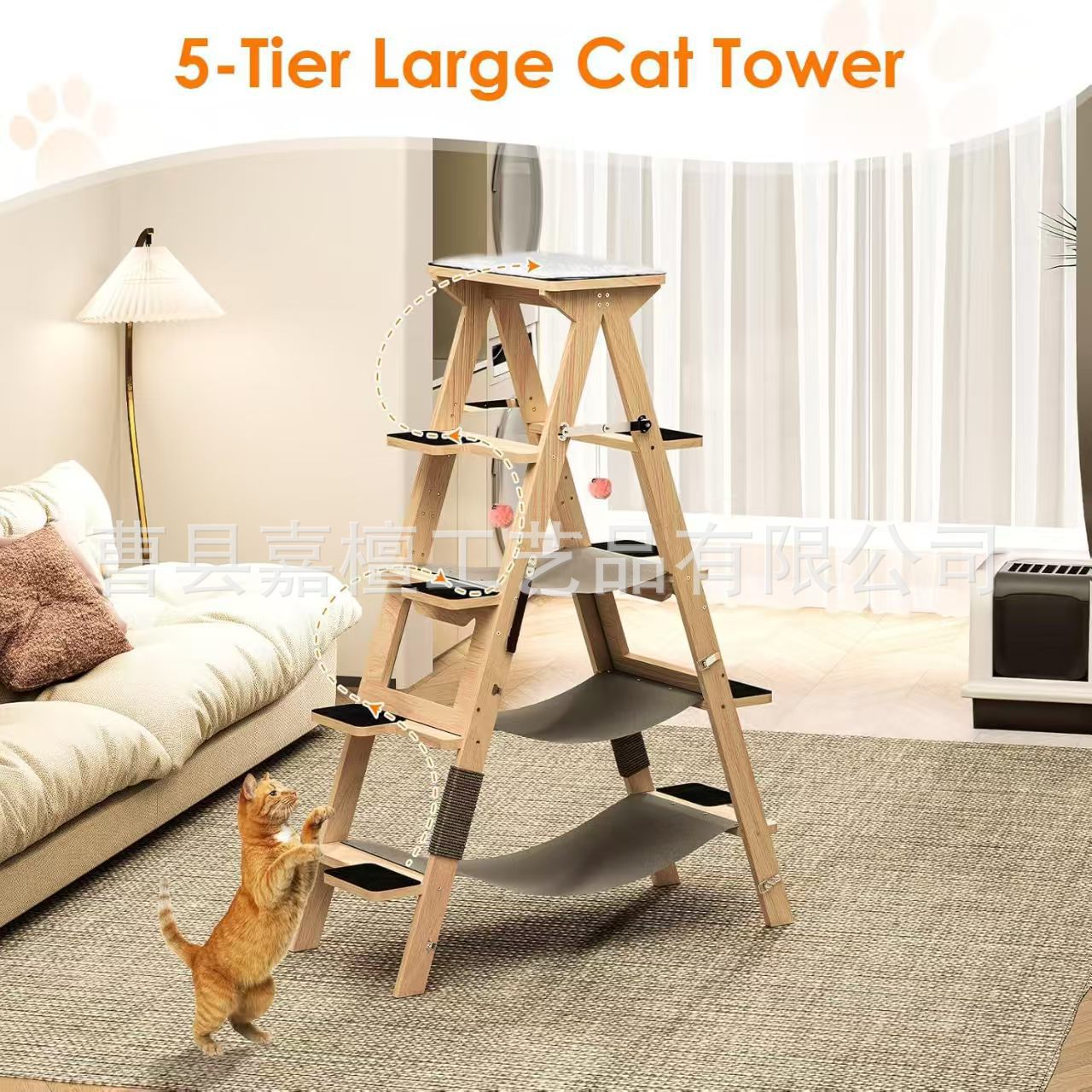 간단한 실내 단단한 나무 애완 동물 클라이밍 프레임, 접이식 고양이 클라이밍 프레임, 고양이 및 개용 사다리, 다층 목재 애완 동물 용품