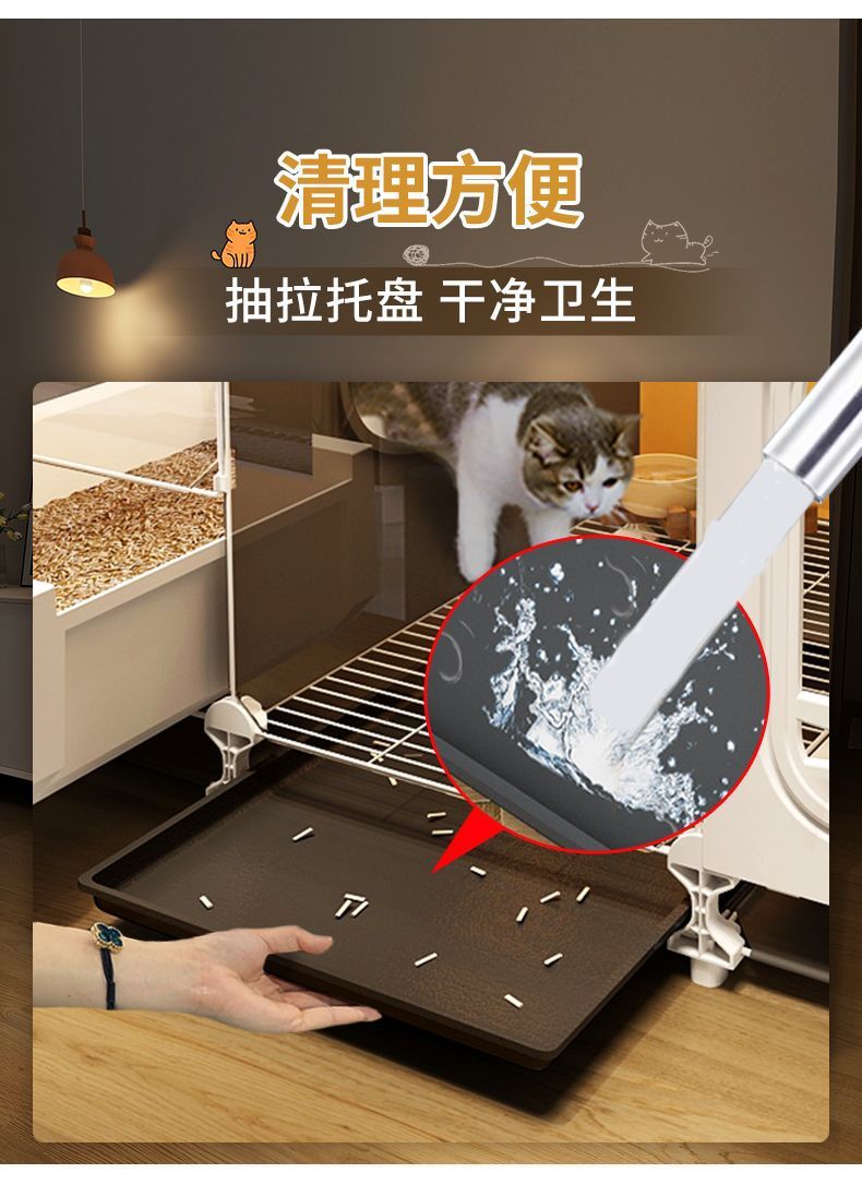 고양이 케이지와 화장실이 하나로 통합되어 공간을 차지하지 않으며, 소형 고양이 캐비닛, 가정용 실내 고양이 빌라, 고양이 둥지, 침실 1개, 거실 1개, 욕실 1개