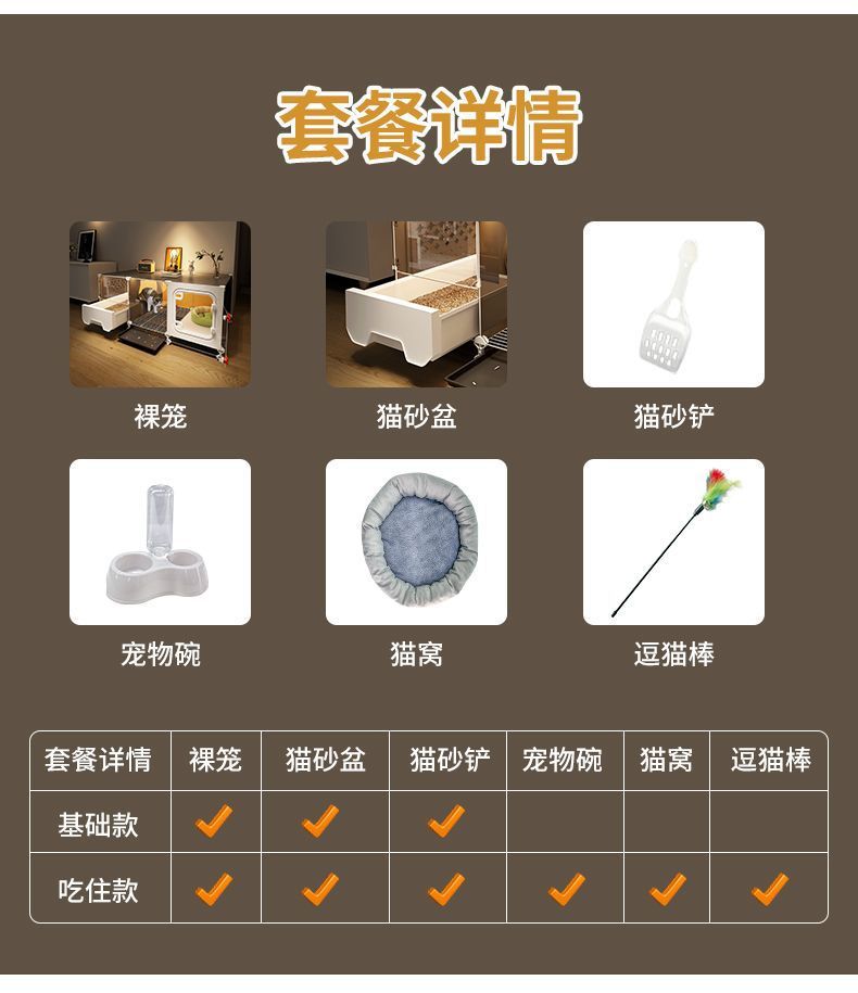 • 기본 모델: 벌거벗은 케이지 + 고양이 배변 상자 + 고양이 배변 국자