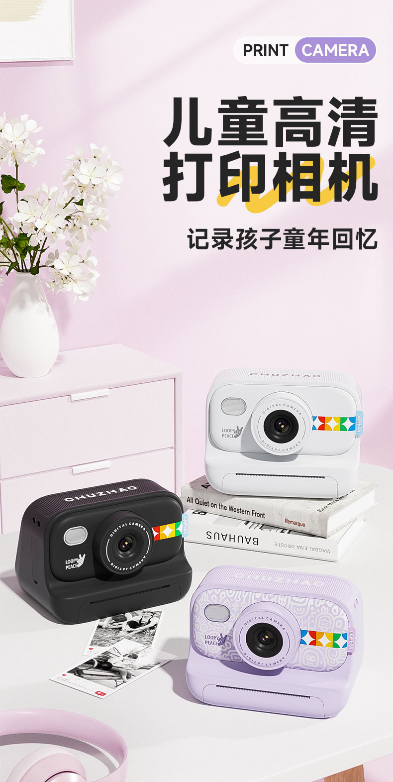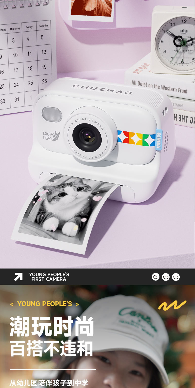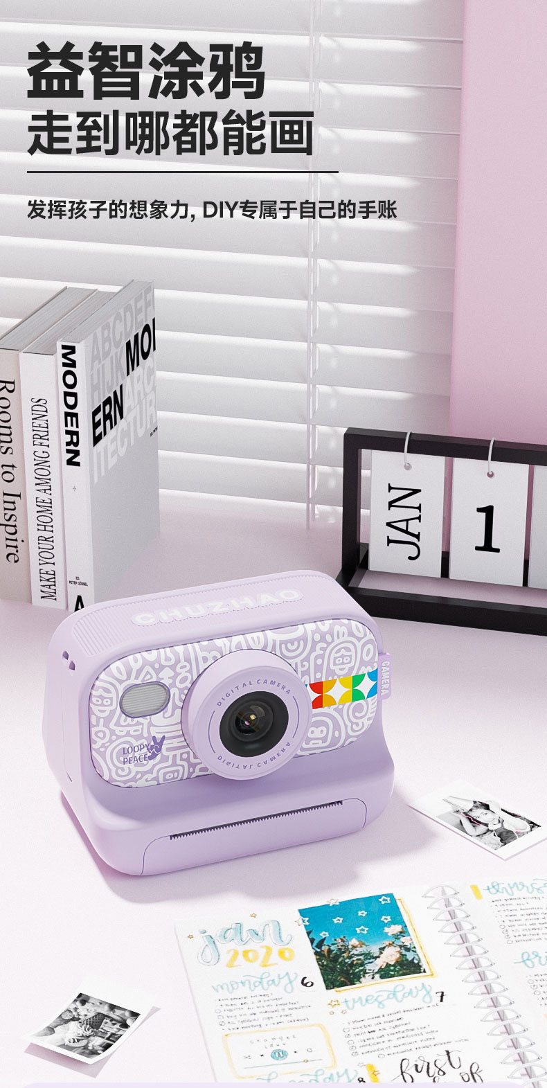 • 화이트 모델 2.0inch은 사진을 찍고 종이에 인쇄할 수 있습니다(인쇄 용지 3롤 포함).