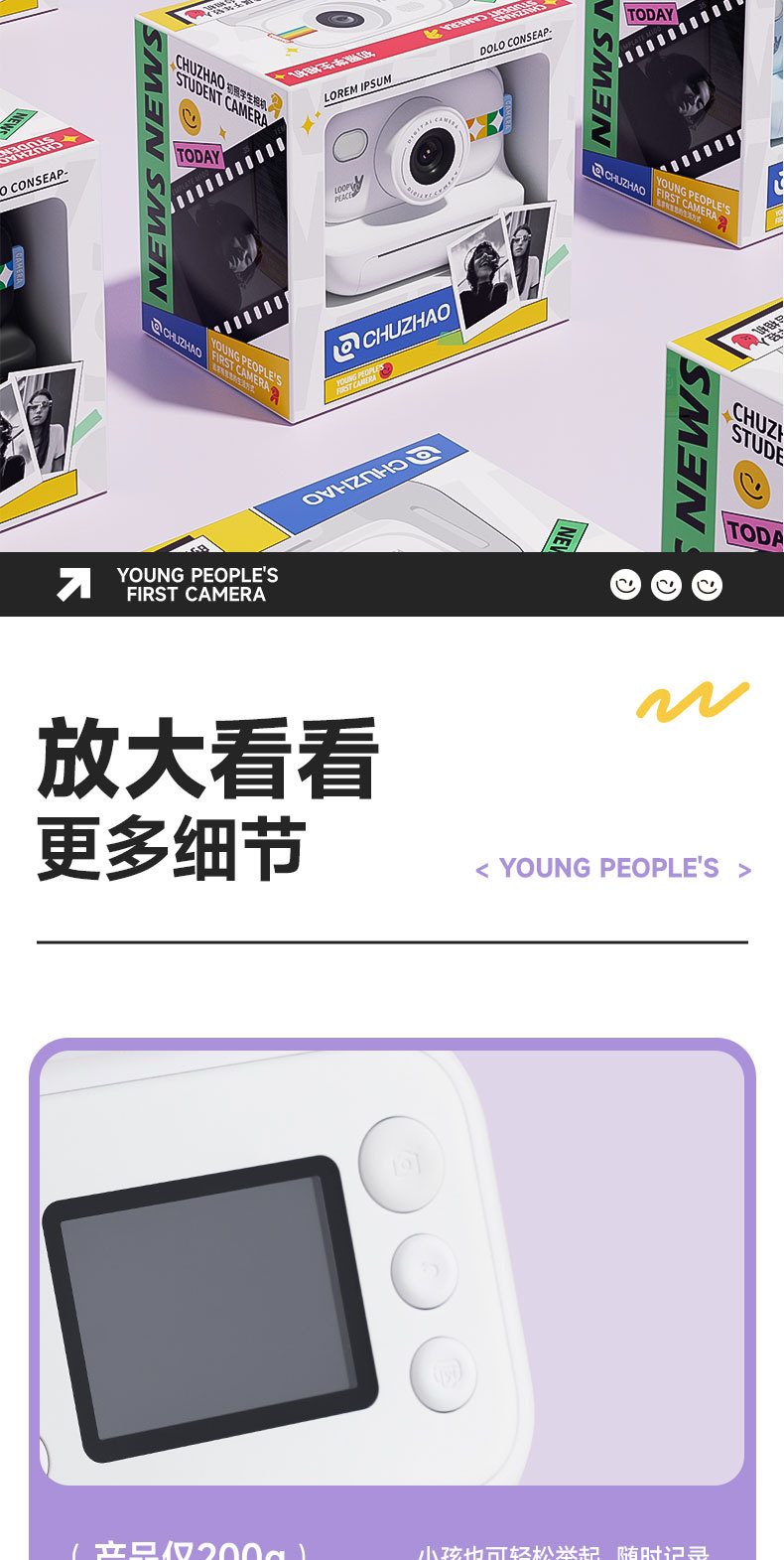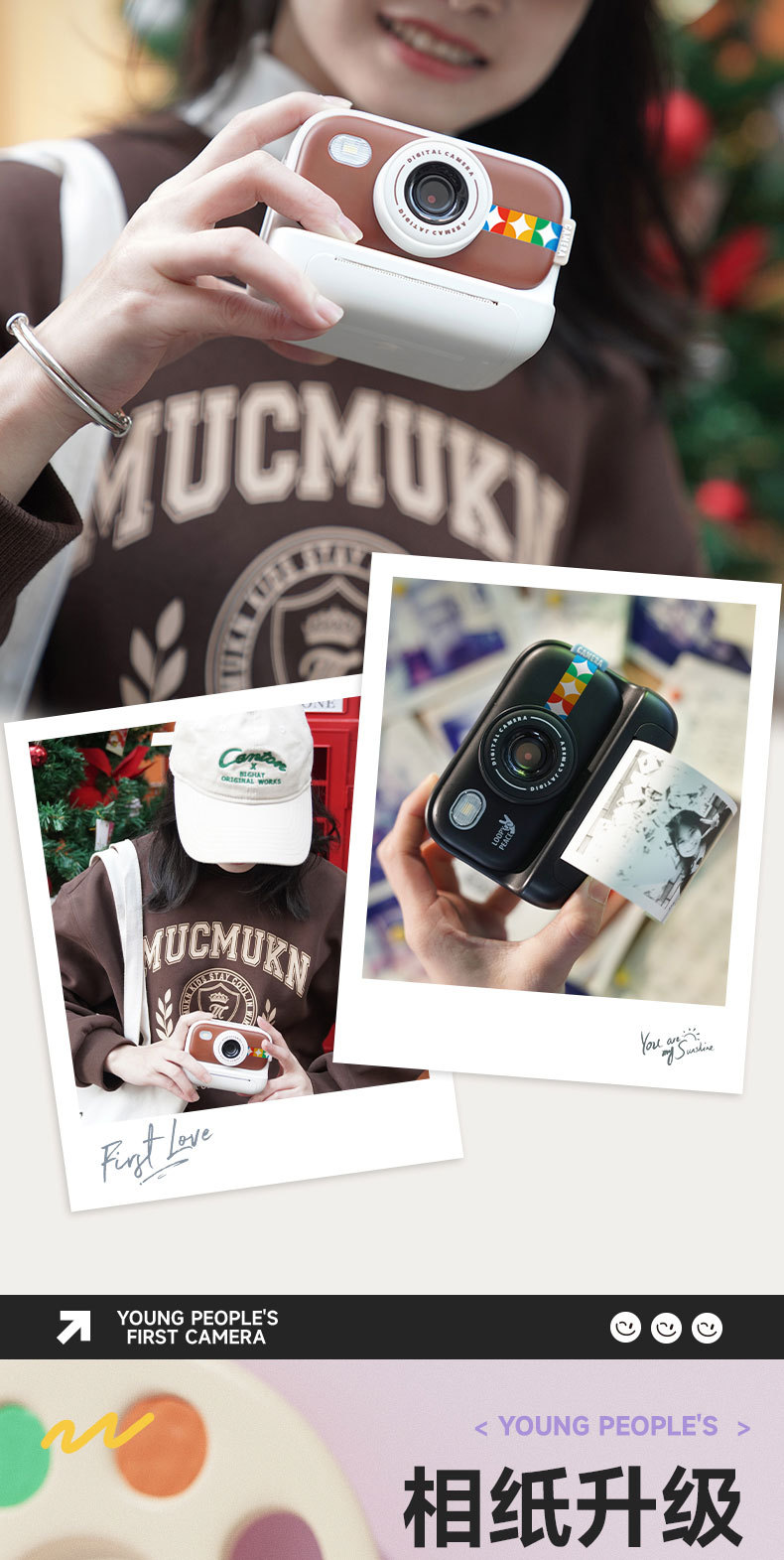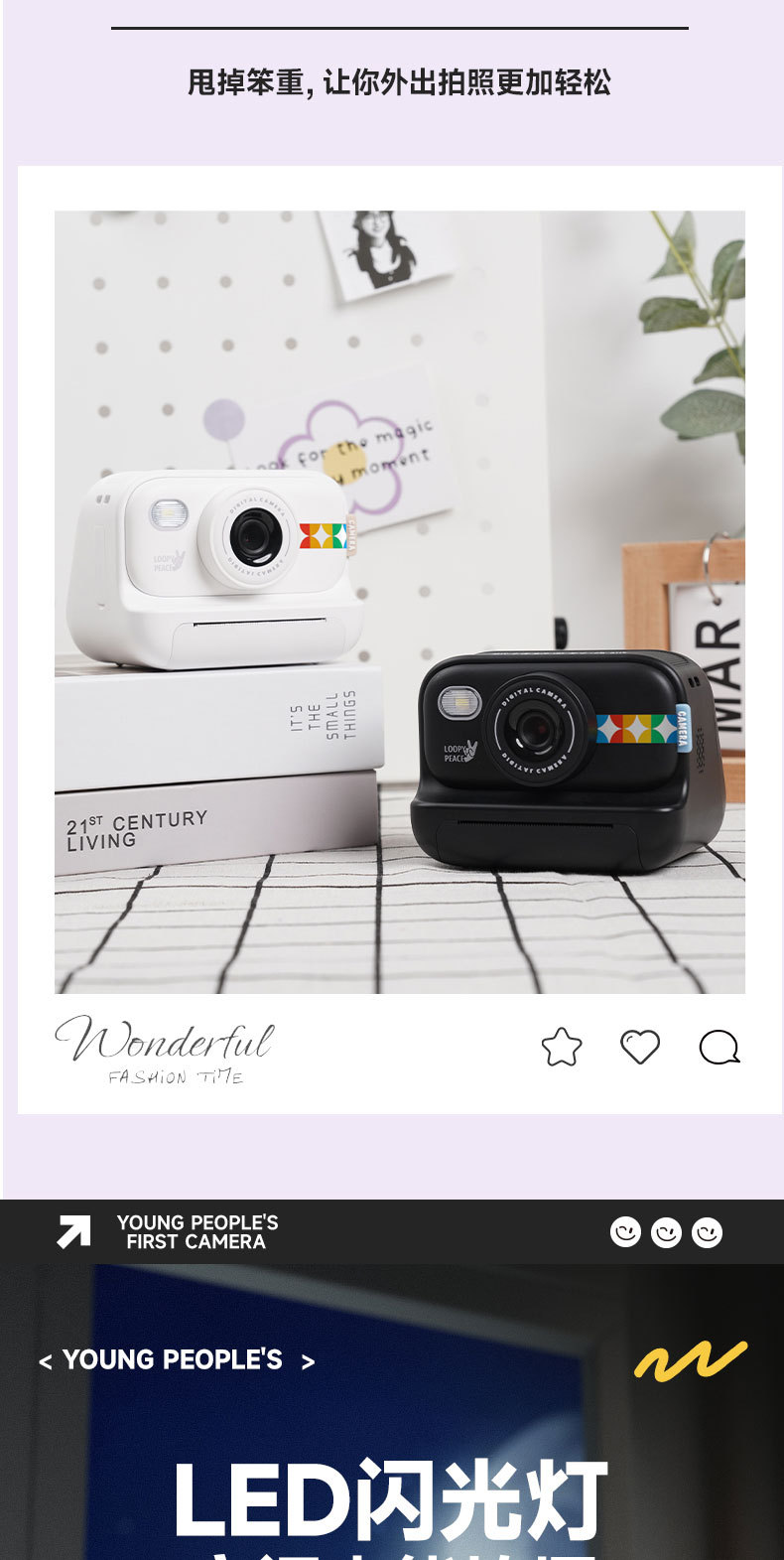 • 화이트 모델 2.0inch은 사진을 찍고 종이에 인쇄할 수 있습니다(인쇄 용지 3롤 포함).