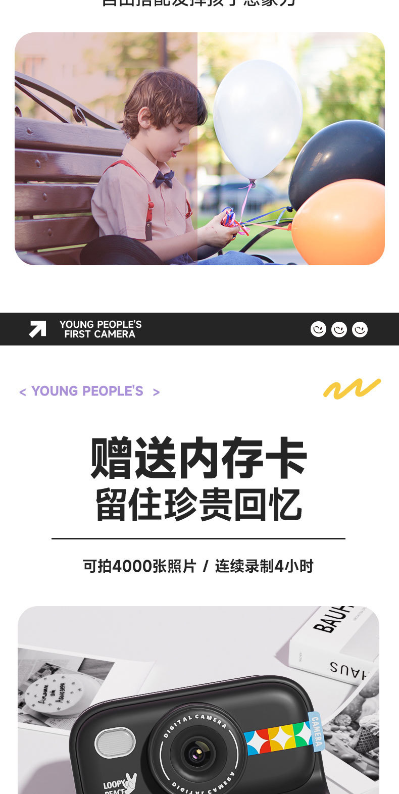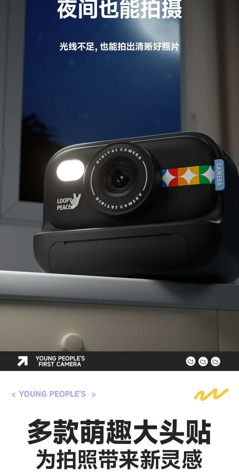 • 검정색 모델 2.0inch은 사진을 찍고 인쇄할 수 있습니다. - 64G 메모리(인쇄 용지 3롤 포함)