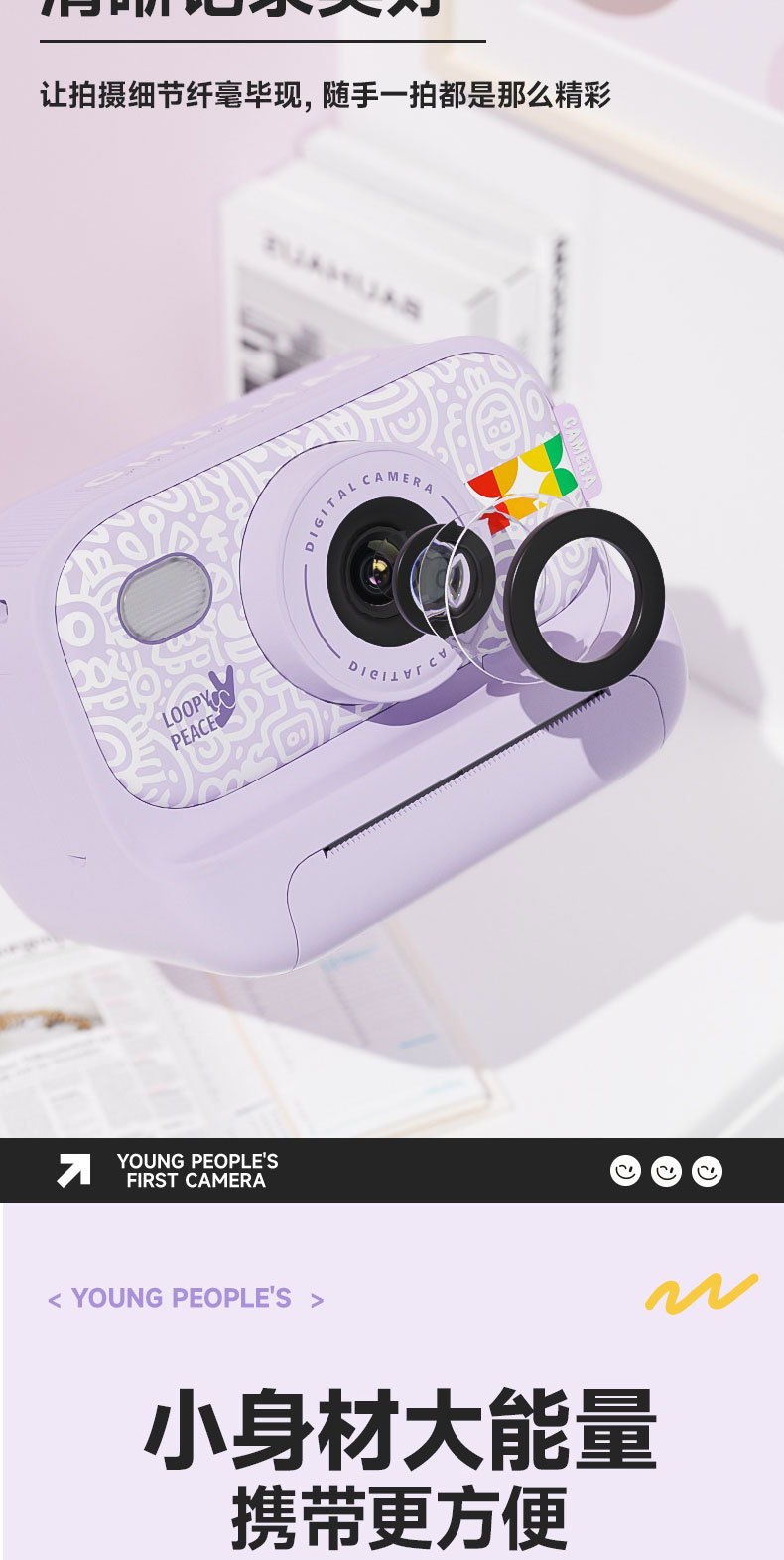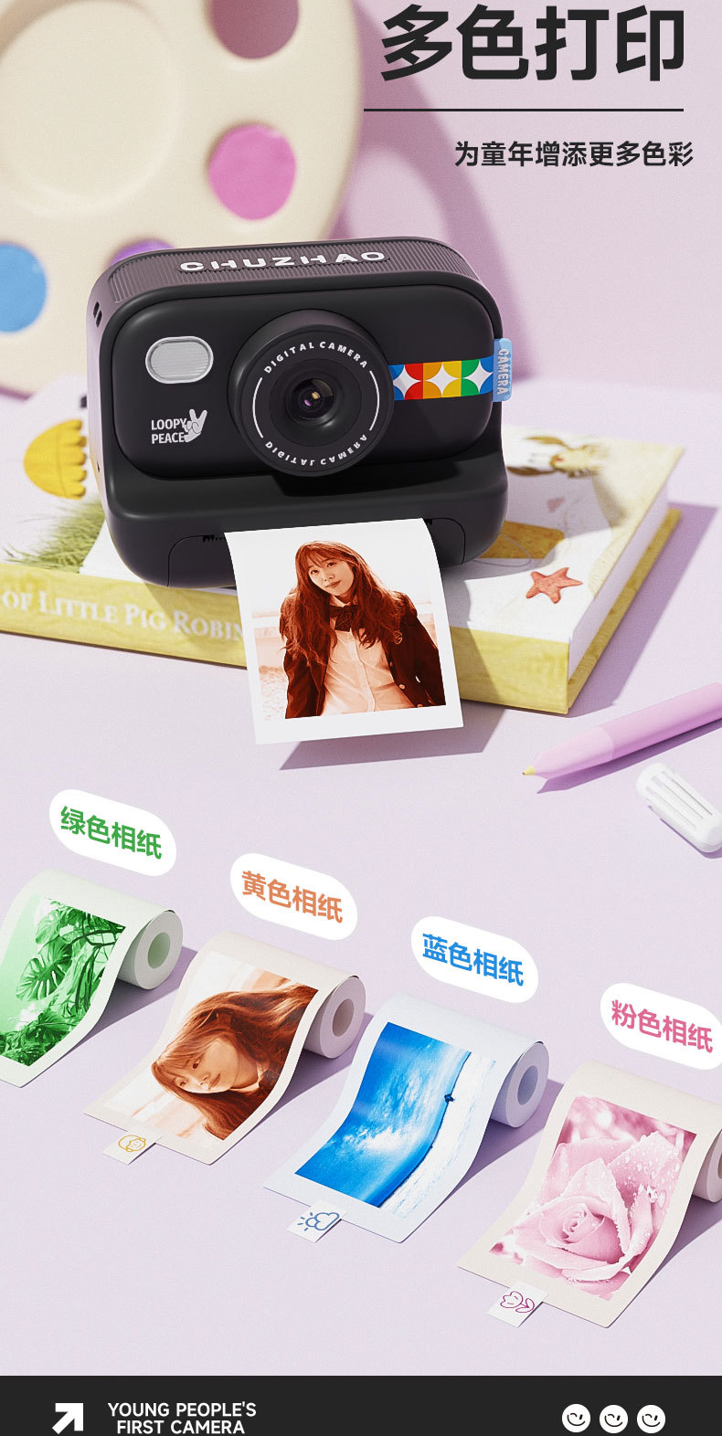 • 보라색 2.0inch 사진 촬영 및 인쇄 가능 용지(인쇄 용지 3롤 포함)